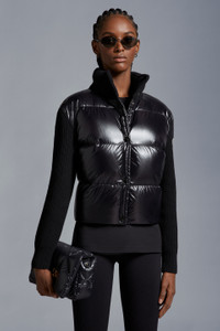 Easily worn year-round, this wool cardigan for women is enhanced with a down-filled front. Crafted from wool, this ribbed knit cardigan is enhanced with a down-filled nylon laque front. A mid-weight knit, the zip-up style doubles as outerwear in the milder months. - Crafted from carded wool and recycled nylon laque - Recycled nylon laque lining - Down-filled front and collar - Half brioche stitch back and sleeves - Gauge 5 - Snap button closure - Side pockets with snap button closure SIZE AND FIT - The model is wearing a size XS and is 176 cm tall - The model measures: bust 75 cm, waist 57 cm, hips 86 cm - Loose fit COMPOSITION AND CARE BASE FABRIC: 100% Wool; OUTER FRONT: 100% Polyamide / Nylon; FRONT LINING: 100% Polyamide / Nylon; PADDING: 90% Down, 10% Feather Do not wash; Do not bleach; Do not tumble dry; Ironing maximum temperature 110°C - without steam; Dry cleaning in tetrachloroethene or with hydrocarbons - mild process; Do not professionally wet clean; Flat dry in the shade; Wash separately; It is advisable to wash and iron with the garment on reverse. Product code J10939B00002M1241999 Made in Moldova
