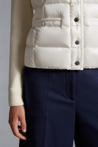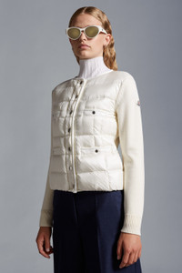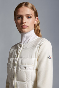 Worn alone or a mid-layer, this padded wool cardigan is a versatile addition to a woman's wardrobe. Crafted from wool, this button up cardigan is enhanced with a down-filled front. The mid-weight knit comes in a feminine fit. - Crafted from ultra-fine Merino wool - Longue saison lining - Down-filled longue saison front - Stockinette stitch - Gauge 7 - Snap button closure - Pockets with snap button closure - Logo patch SIZE AND FIT - The model is wearing a size XS and is 178 cm tall - The model measures: bust 82 cm, waist 60 cm, hips 89 cm - Regular fit COMPOSITION AND CARE OUTER FRONT: 100% Polyamide / Nylon; FRONT LINING: 100% Polyamide / Nylon; PADDING: 90% Down, 10% Feather; BASE FABRIC: 100% Virgin wool Do not wash; Do not bleach; Do not tumble dry; Ironing maximum temperature 110°C - without steam; Dry cleaning in tetrachloroethene or with hydrocarbons - mild process; Do not professionally wet clean; Flat dry in the shade; Wash separately; Iron with a cloth between; It is advisable to wash and iron with the garment on reverse. Product code I20939B00011M1131030 Made in Romania