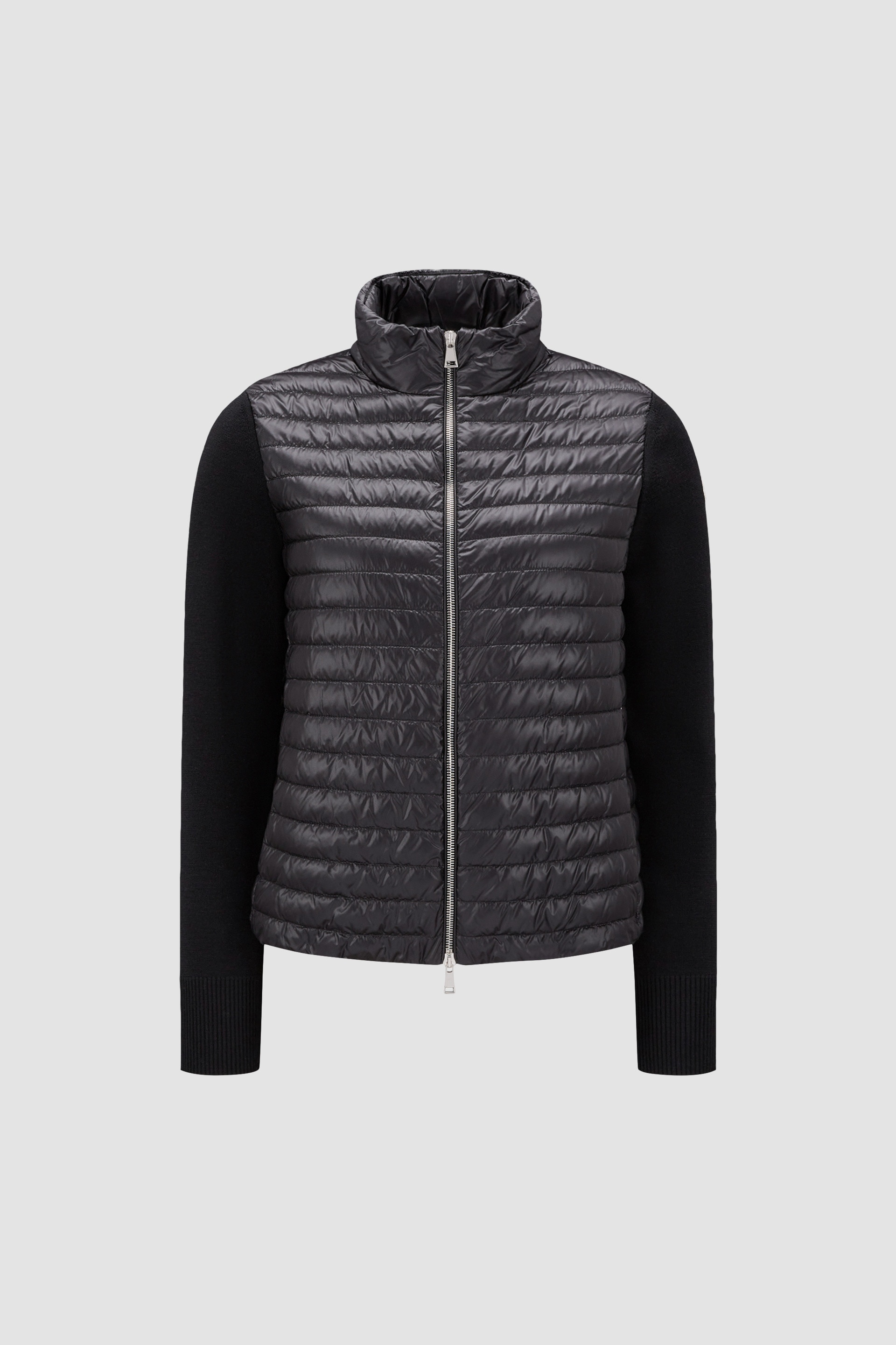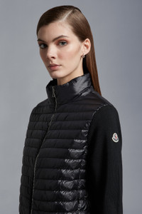 A year-round design, this wool cardigan for women is enhanced with a down-filled front. A classic Moncler design, this cardigan can be worn alone when weather permits, or layered under jackets and coats when the temperatures drop. Crafted from wool, the knit features a down filled-front that provides warmth and protection. - Crafted from ultra-fine wool and nylon leger brillant - Nylon leger brillant lining - Down-filled - Plain knit - Gauge 14 - Zipper closure - Zipped pockets SIZE AND FIT - The model is wearing a size XS and is 178 cm tall - The model measures: bust 77 cm, waist 60 cm, hips 89 cm - Loose fit COMPOSITION AND CARE BODY LINING: 100% Polyamide / Nylon; PADDING: 90% Down, 10% Feather; SLEEVES: 100% Virgin wool; BASE FABRIC: 100% Polyamide / Nylon Do not wash; Do not bleach; Do not tumble dry; Ironing maximum temperature 110°C - without steam; Dry cleaning in tetrachloroethene or with hydrocarbons - mild process; Do not professionally wet clean; Flat dry in the shade; Wash separately; Iron with a cloth between; It is advisable to wash and iron with the garment on reverse. Product code J10939B00024M1131999 Made in Moldova