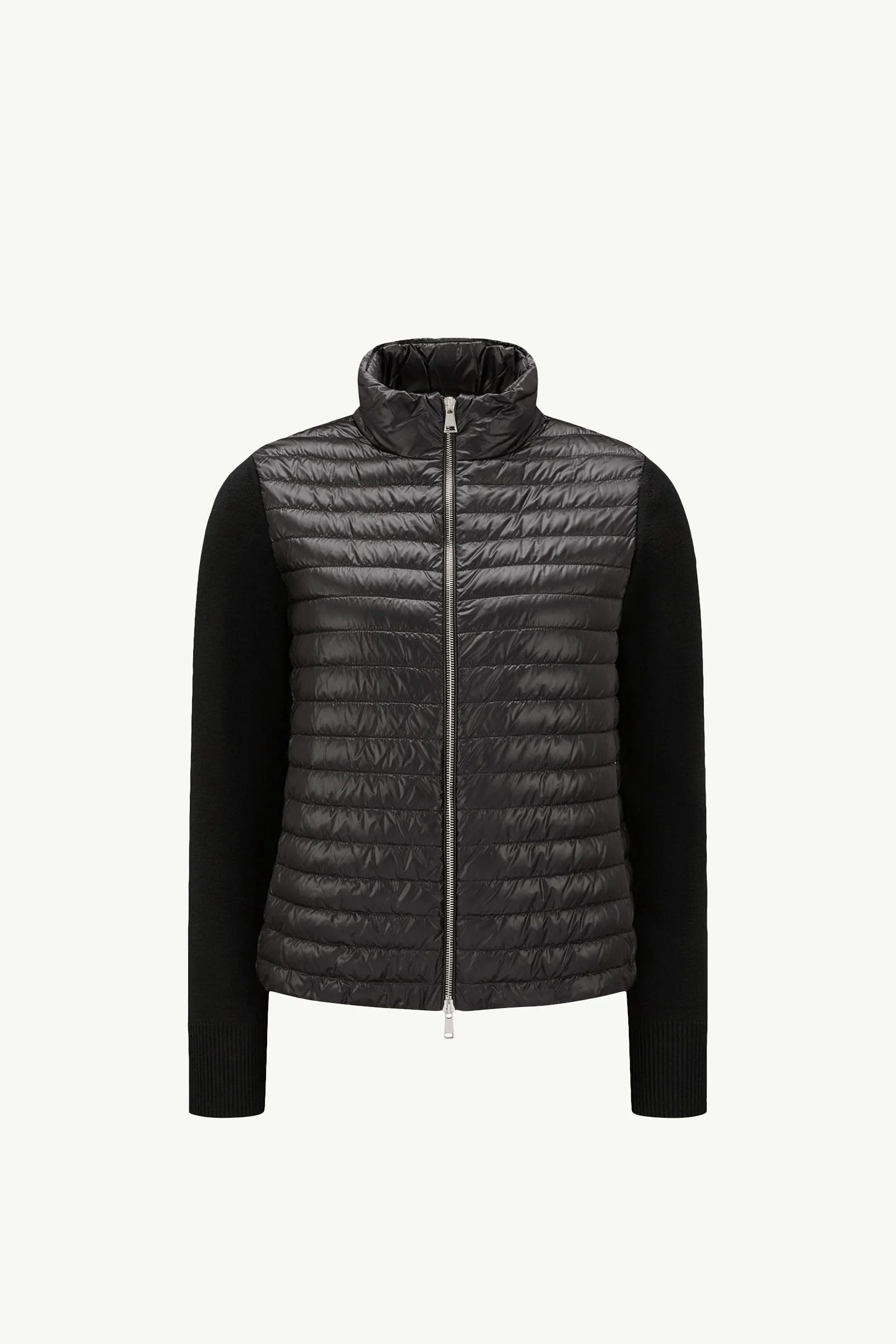 A year-round design, this wool cardigan for women is enhanced with a down-filled front. A classic Moncler design, this cardigan can be worn alone when the weather permits, or layered under jackets and coats when the temperatures drop. Crafted from wool, the knit features a down-filled front that provides warmth and protection. DETAILS - Crafted from ultra-fine wool - Nylon leger lining - Down-filled nylon leger front - Plain knit - Gauge 14 - Zipper closure - Zipped pockets SIZE AND FIT - The model is wearing a size XS and is 178 cm tall COMPOSITION BASE FABRIC: 100% Polyamide / Nylon; BODY LINING: 100% Polyamide / Nylon; PADDING: 90% Down, 10% Feather; SLEEVES: 100% Virgin wool Product code L10939B00032M1131999 Made in Moldova