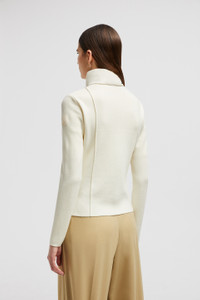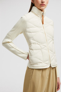A feminine addition to a sophisticated woman's wardrobe, this cardigan is crafted from wool with a down-filled front. Easily doubling as outerwear when the weather permits, this wool cardigan is enhanced with a down-filled front. The lightweight knit comes in a high neck, zip-up silhouette. DETAILS - Crafted from carded wool - Longue saison lining - Down-filled nylon front - Gauge 14 - Zipper closure - Side pockets with zipper closure - Nylon logo patch - Logo patch SIZE AND FIT - The model is wearing a size XS and is 177 cm tall - The model measures: bust 80 cm, waist 62 cm, hips 89 cm - Slim fit COMPOSITION OUTER FRONT: 100% Polyamide / Nylon; BASE FABRIC: 100% Virgin wool; FRONT LINING: 100% Polyamide / Nylon; COLLAR: 100% Polyamide / Nylon; PADDING: 90% Down, 10% Feather Product code J20939B00030M1131002 Made in Moldova