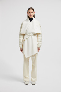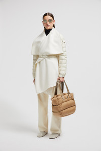 Perfect for sophisticated layered looks, this padded cape from the women's collection is crafted from wool felt. Emblematic of comfortable elegance, this padded wool felt cape features a fluid silhouette. True to brand DNA, the accessory features quilted nylon sleeves and a patch pocket. An adjustable belt completes the design. DETAILS - Crafted from wool felt - Padded longue saison sleeves - Sleeve pocket with snap button closure - Belt - Adjustable cuffs COMPOSITION BASE FABRIC: 80% Virgin wool, 20% Polyamide / Nylon; OUTER SLEEVES : 100% Polyamide / Nylon; SLEEVES LINING: 100% Polyamide / Nylon; 1 MATERIAL: 100% Polyamide / Nylon; PADDING: 90% Down, 10% Feather; DETAILS PADDING: 100% Polyester Product code K10933G00008M5651051 Made in Moldova
