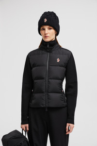 Designed with mountain leisure in mind, this padded wool zip-up cardigan is from the women's Moncler Grenoble collection. Crafted from technical wool, this zip-up cardigan is soft to the touch while remaining resistant enough for relaxing in the outdoors. The lightweight knit boasts a warm down-filled front and inserts in light fleece. DETAILS - Crafted from comfort technical wool - Rainwear lining - Performance Lightfleece sides and underarms - Down-filled front - Gauge 14 - Stand collar with snap button closure - Wholestitch back - Sleeves with inserts in performance nylon - Water-repellent look zipper closure - Pocket with water-repellent look zipper closure SIZE AND FIT - The model is wearing a size S and is 179 cm tall - The model measures: bust 80 cm, waist 60 cm, hips 88 cm - Regular fit COMPOSITION OUTER FRONT: 100% Polyamide / Nylon; BASE FABRIC: 95% Virgin wool, 5% Polyester; FRONT LINING: 100% Polyester; COLLAR: 100% Polyamide / Nylon; PADDING: 90% Down, 10% Feather; DETAILS PADDING: 100% Polyester Product code J20989B00004M1122999 Made in Moldova