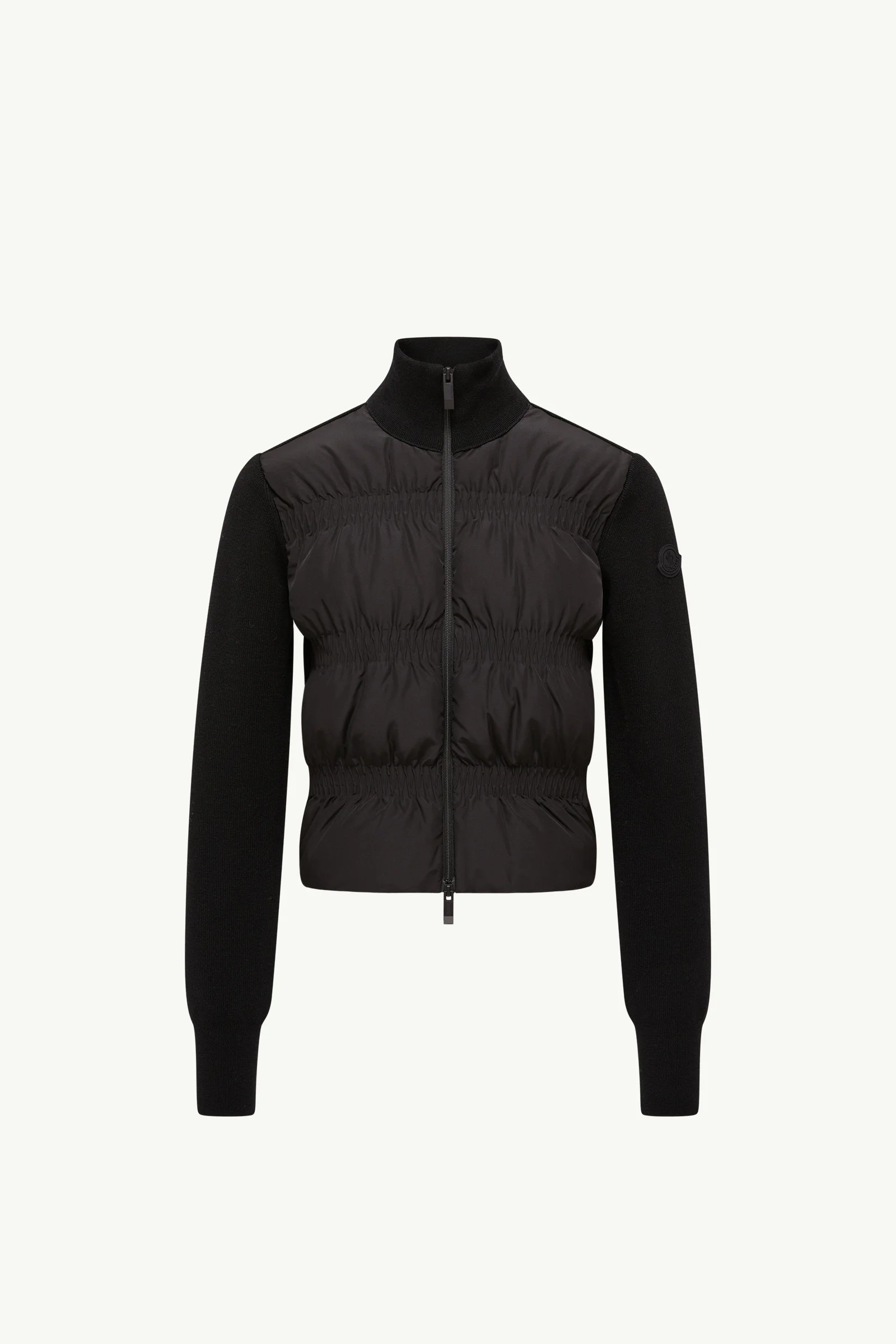 Reimagining a signature design, this wool zip-up cardigan is characterized by gathered quilting. Designed to be worn throughout the year, this wool cardigan features a warm down-filled front. The lightweight knit is further enhanced with a gather-quilted pattern, adding a feminine and contemporary feel to the design. DETAILS - Crafted from ultra-fine wool - Down-filled taffeta front with gathered effect - Half-brioche stitch - Gauge 12 - Zipper closure - Zipped pockets - Silicone logo patch SIZE AND FIT - The model is wearing a size XS and is 179 cm tall - Regular fit COMPOSITION OUTER FRONT: 100% Polyester; BASE FABRIC: 100% Virgin wool; FRONT LINING: 100% Polyester; PADDING: 90% Down, 10% Feather Product code K20939B00020M1131999 Made in Romania