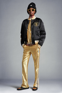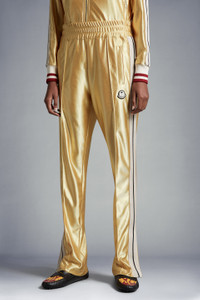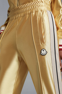 Emblematic of the 8 Moncler Palm Angels collection, these sweatpants for men and women comes in a shiny texture. In exploration of clothing archetypes, the Moncler Genius collection takes its trademark tracksuit and revisits it in shiny, technical jersey. The sweatpants are embellished with iconic triacetate bands along the legs. Pair yours with a matching sweatshirt from the 8 Moncler Palm Angels collaboration. - Crafted from shiny technical jersey - Front pintuck seams - Knit side band - Collection logo patch SIZE AND FIT - The male model is wearing a size L and is 186 cm tall - The female model is wearing a size S and is 175 cm tall - The male model measures: chest 89 cm, waist 86 cm, hips 95 cm - The female model measures: bust 80 cm, waist 59 cm, hips 87 cm COMPOSITION AND CARE BASE FABRIC: 100% Polyester Wash max 30°C - Very mild process; Do not bleach; Do not tumble dry; Ironing maximum temperature 110°C - without steam; Dry cleaning in tetrachloroethene or with hydrocarbons - mild process; Professional wet cleaning - very mild process; Flat dry in the shade; Wash separately; Iron with a cloth between; It is advisable to wash and iron the garment on reverse.; PROTECT TRIMS WHILE WASHING Product code H209L8H00001M2522135 Made in Albania