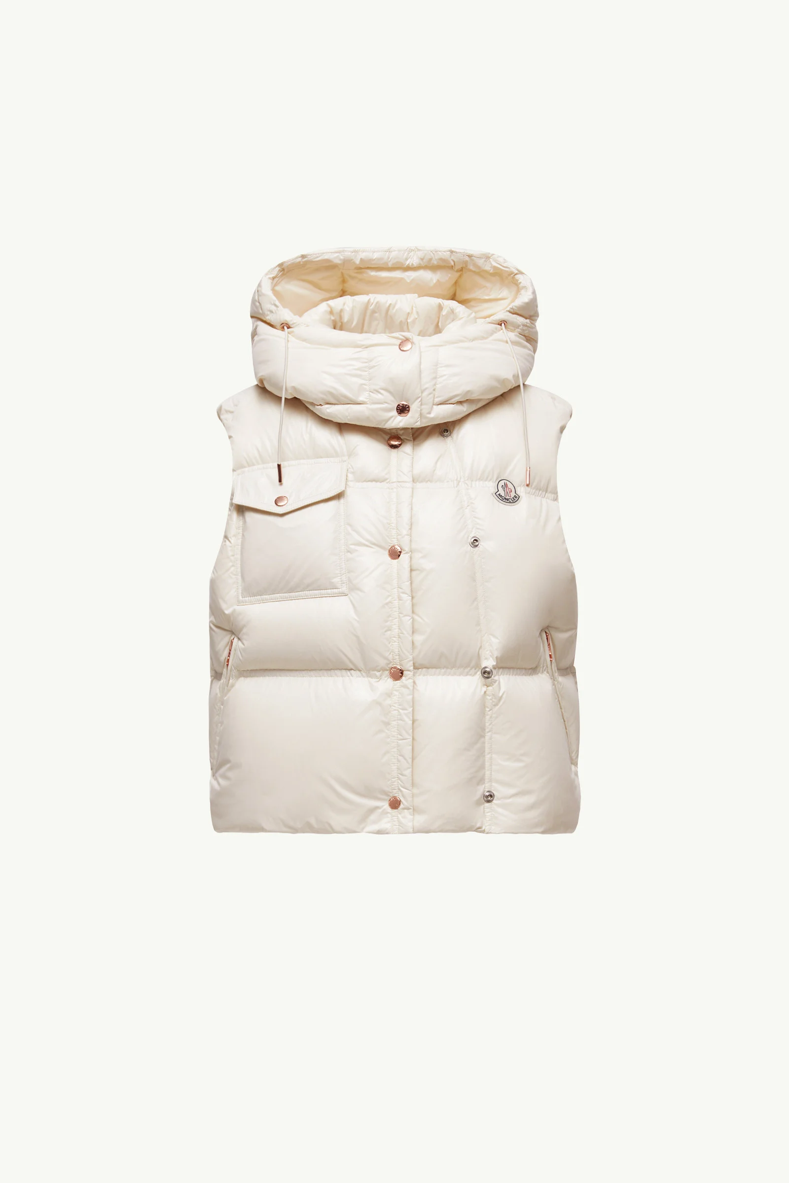 Light-catching fabrics and a bold geometric design add an unexpected twist to the Pario down vest for women. Truly contemporary, the Pario down vest plays with shapes and texture. The puffer vest is crafted from super laque, a water-repellent nylon fabric with a shiny finish. The hooded warmer features a double snap button closure, allowing it to take on an asymmetrical shape. Accentuating its graphic design, different sized quilting completes the piece. DETAILS - Crafted from super laque - Nylon lining - Down-filled - Detachable and adjustable hood - Snap button closure - Zipped pockets - Chest pocket with snap button closure - Hem with drawstring fastening - Logo patch SIZE AND FIT - The model is wearing a size 0 and is 175 cm tall - Oversized fit - Oversized shoulders - Fitted waist - Length (collar to hem): 57 cm COMPOSITION EXTERIOR: 100% Polyamide / Nylon; LINING: 100% Polyamide / Nylon; HOOD LINING: 100% Polyamide / Nylon; PADDING: 90% Down, 10% Feather Product code K20931A00096596XE02B Made in Romania