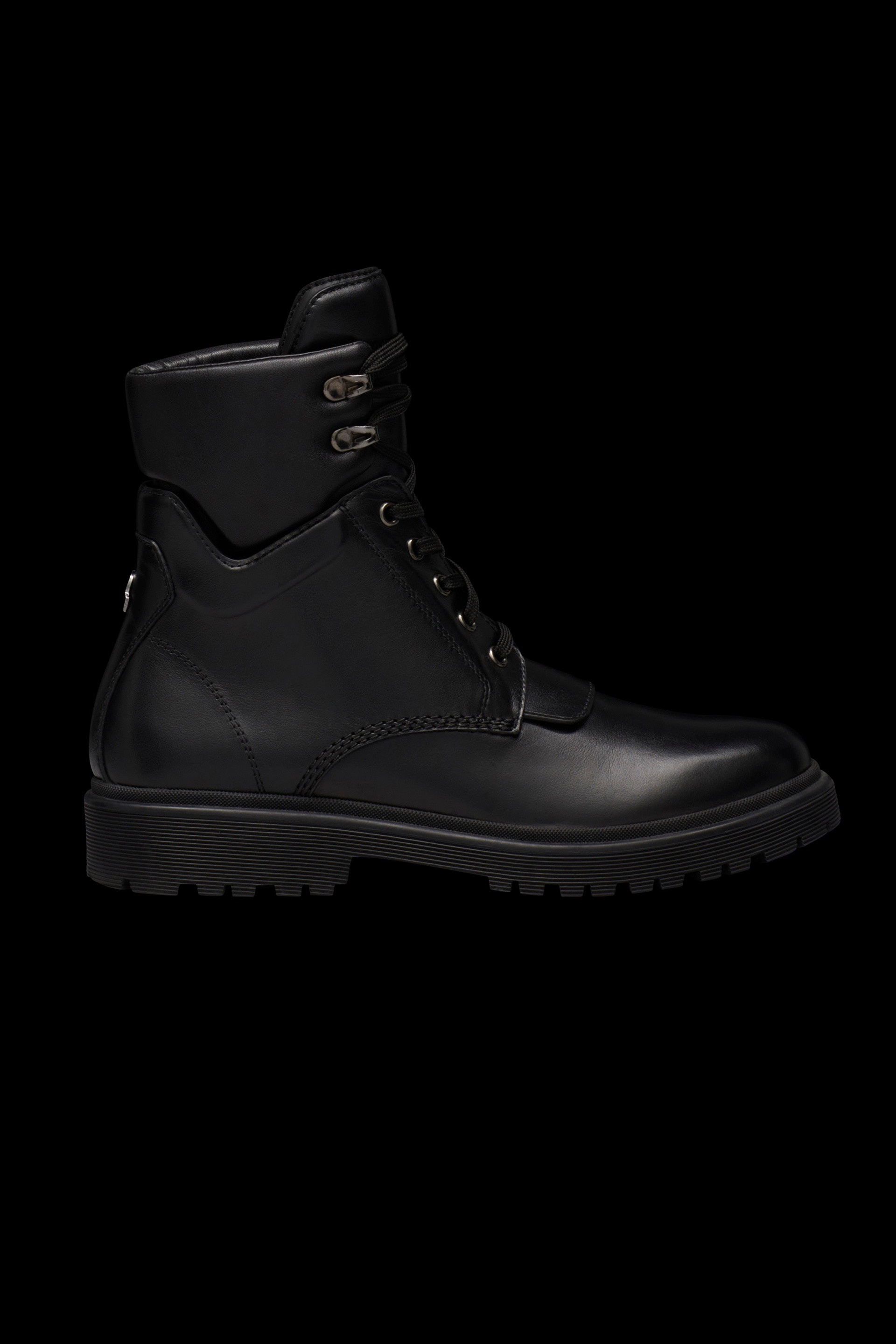 The Patty ankle boots draw inspiration from classic motorcycle gear and, combine quality materials and protection to add an authentic Moncler touch to everyday looks. The Patty is the ankle boot with a comfortable, rugged military-inspired design. This style is crafted in leather and showcases a padded collar, lace up closure and a rubber lug outsole. The Moncler metal logo on the back adds a precious, feminine touch. - Ankle boots for women - Crafted in leather - Lace up closure - Rubber lug outsole - Moncler logo on back COMPOSITION AND CARE SOLE: 100% Elastodiene;UPPER: COW; UPPER: LAMB; LINING: COW To protect your purchase over time, we recommend the shoes be cleaned using a brush with soft natural bristles or a slightly damp soft cloth. Before cleaning, make sure that the shoes are completely dry. After brushing, apply an appropriate amount of cleaning product to the leather and create small circular motions with a soft dry cloth. For suede shoes, please use a special rubber brush. We also recommend the use of a suitable water-repellent product before wearing the shoes in wet conditions. Dry away from direct heat. Finish the cleaning using a dry clean cloth. Store in the felt bag provided at the time of purchase. Product code G209B4F70500019FA999 Made in Italy