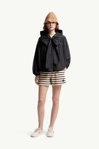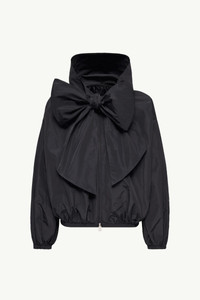 Framing lightness in new ways, the Pecher hooded jacket for women is crafted from light taffeta. Exploring volume and proportion, the Pecher jacket is shaped by a soft, oversized silhouette. The lightweight taffeta enhances its airy drape, while the fixed hood adds a functional layer, blending expressive volume with a contemporary attitude. DETAILS - Crafted from taffeta - Taffeta lining - Fixed hood - Self-tie neck bow - Zipper closure - Welt pockets - Logo patch SIZE AND FIT - The model is wearing a size 0 and is 178 cm tall - Regular fit - Length (collar to hem): 60 cm COMPOSITION BASE FABRIC: 100% Polyester Product code L10931A00157598AK77D Made in Romania