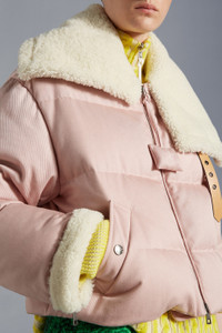 Emblematic of the 1 Moncler JW Anderson aesthetic, the women's Penygarder down jacket is crafted from denim. Encompassing the boundless creativity and postmodern edge of the 1 Moncler JW Anderson collection, the Penygarder short down jacket has a strong silhouette. Crafted from soft denim, the women's puffer is adorned with a sheepskin collar and a bold collaboration logo patch. - Crafted from soft hand denim - Longue saison lining - Down-filled - Contrast color sheepskin collar and cuffs - Collar closure with straps, metal buckles and eyelets - Zipper closure with padded puller with JWA embroidery and Moncler embroidery - Patch pocket with snap button closure - Studded synthetic material leather-effect Moncler/JW Anderson logo SIZE AND FIT - The model is wearing a size 0 and is 181 cm tall - The model measures: chest 80 cm waist 57 cm hips 89 cm - Oversized fit COMPOSITION AND CARE LINING: 100% Polyamide / Nylon; PADDING: 90% Down, 10% Feather; DETAILS PADDING: 100% Polyester; BASE FABRIC: 60% Polyester, 40% Cotton;Fur 1: SHEEP Do not wash; Do not bleach; Do not tumble dry; Do not iron; Do not dry clean; Do not professionally wet clean; Flat dry in the shade; Wash separately; Wash in professional laundry for leather Product code H209E1A00009M1622602 Made in Romania