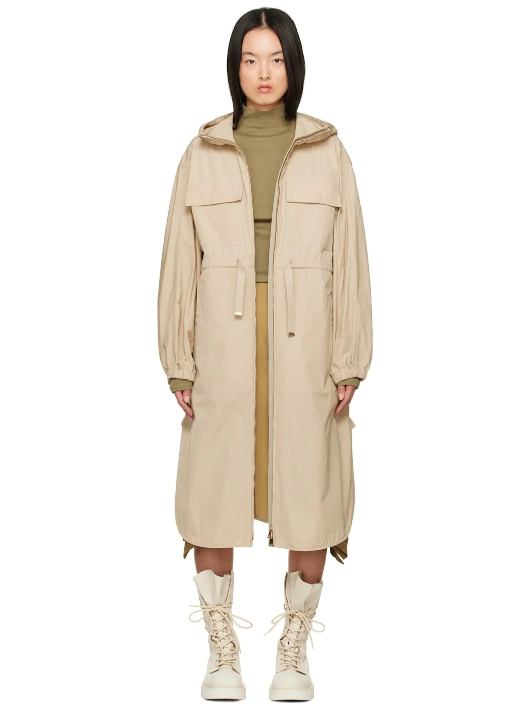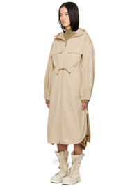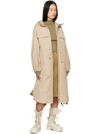 Polyester- and cotton-blend taffeta coat. · Bungee-style drawstring at hood · Stand collar · Two-way zip closure · Flap and welt pockets · Drawstring at waist · Vented side seams · Logo patch at sleeve · Elasticized cuffs Supplier color: Beige Body: 60% polyester, 40% cotton. Trim: 60% polyester, 40% cotton. Made in Italy 251111F059001