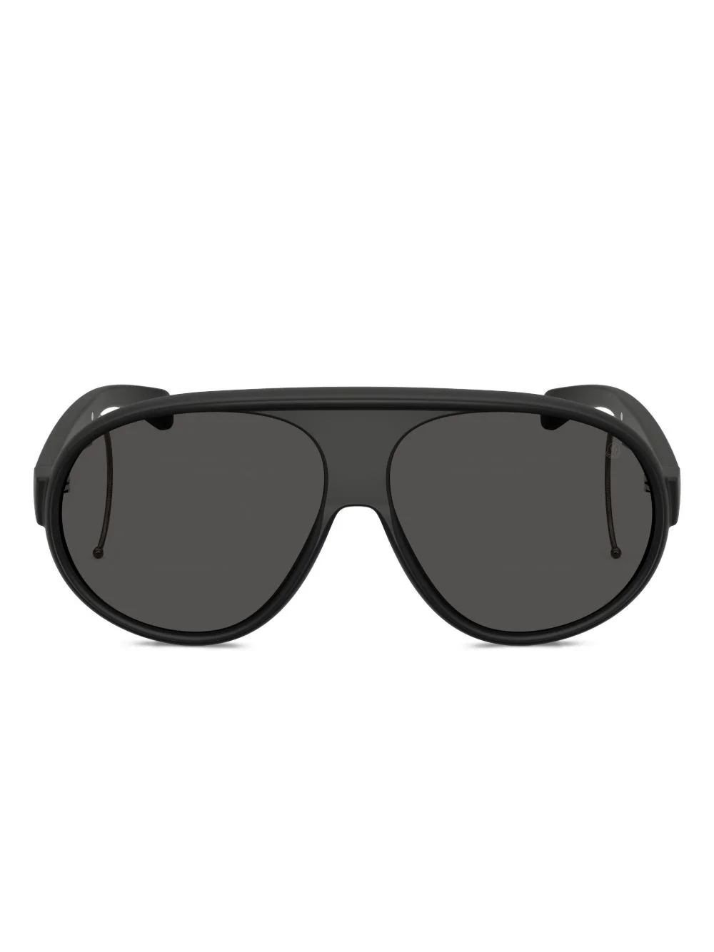 pilot-frame sunglasses Highlights - Black - Pilot design - Oversized frame - Dark lenses - Flexible temple arms - These glasses come with a protective case. Made In Italy Composition Acetate 100%, Metal 100% SIZE & FIT Measurement Arm Length 5.7 in(14.5 cm) Bridge Width 0.51 in(1.3 cm) Lens Diameter 2.44 in(6.2 cm)