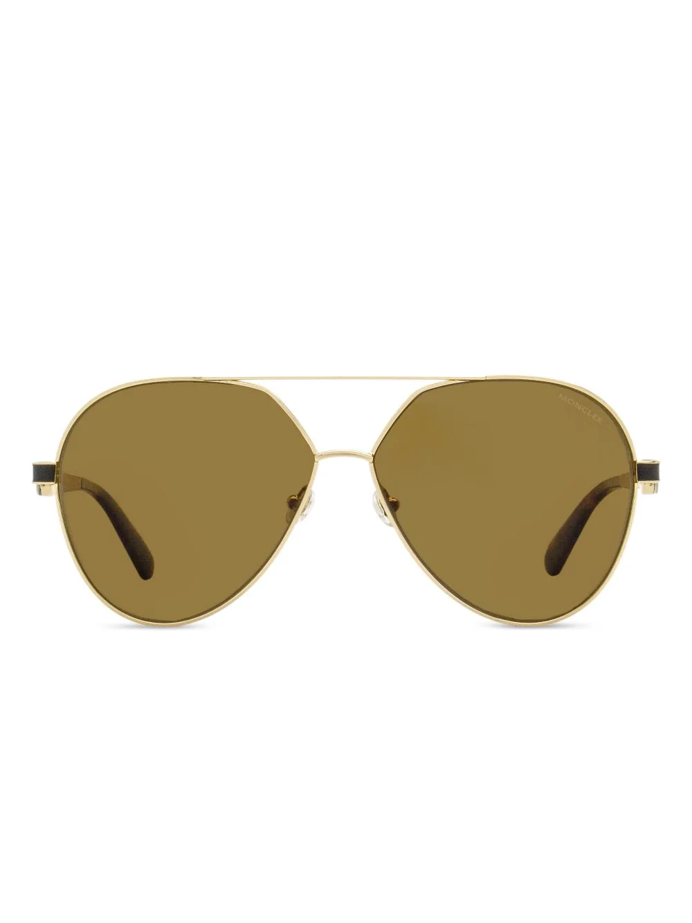 pilot wide-bridge sunglasses Highlights - Gold-tone - Pilot frame - Wide bridge - Logo detail - Lacquered temples - Nose pads - These glasses come with a protective case. Made in Italy Composition Metal 50%, Acetate 50% SIZE & FIT Measurement Arm Length 5.7 in(14.5 cm) Bridge Width 0.47 in(1.2 cm) Lens Diameter 2.32 in(5.9 cm) Total Width 5.62 in(14.3 cm)