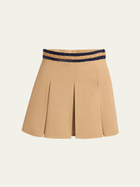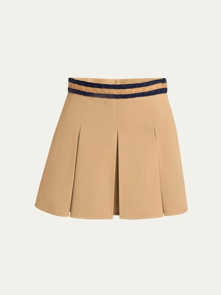 Moncler pleated mini skirt embellished with a braided twotone waistband High rise Side pockets Circlecut silhouette Hem falls above the knee Side zip Cotton/elastane Unlined Hand wash Imported