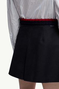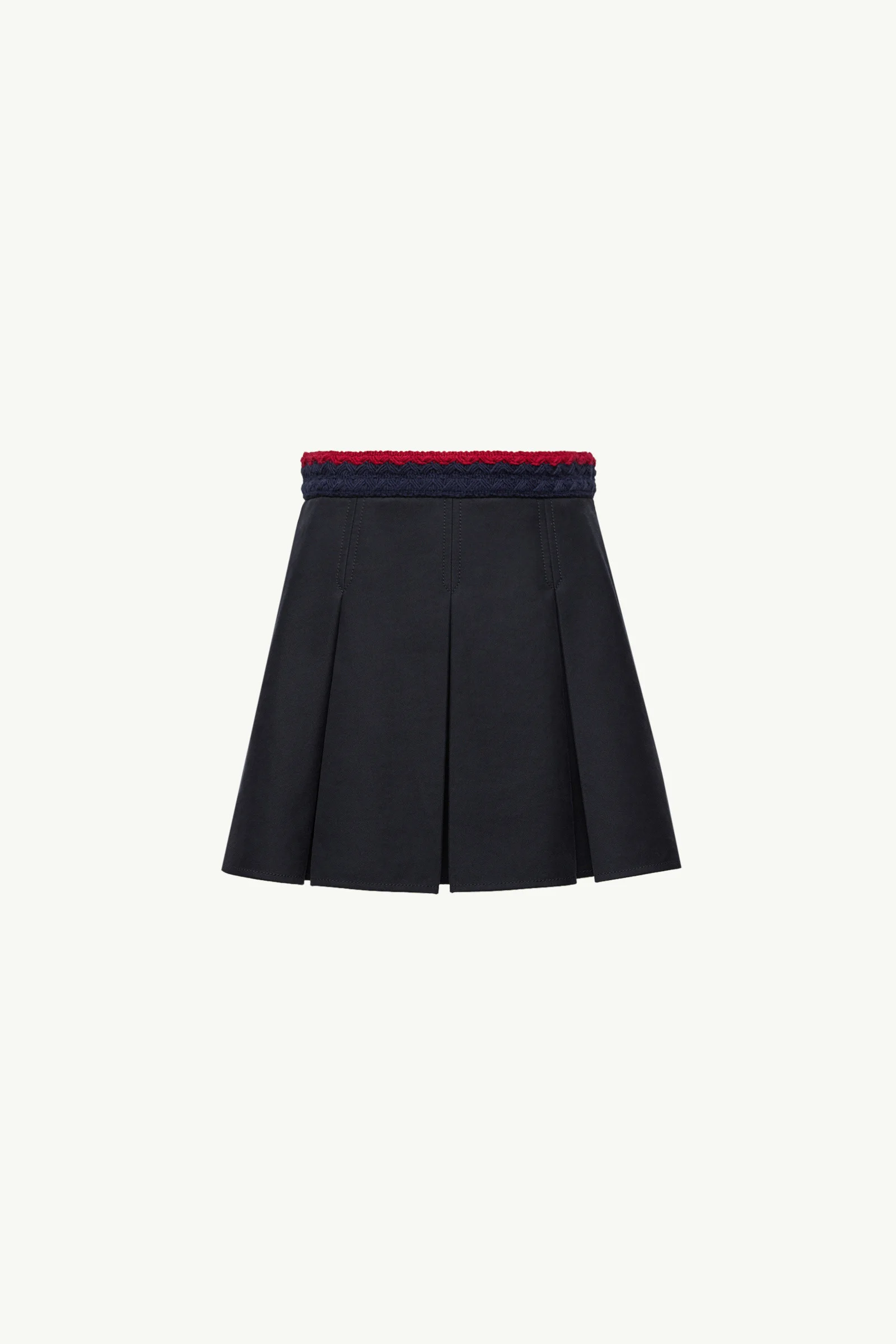 Synonymous with comfortable elegance, this mini skirt for women is crafted from cotton gabardine with a stretch finish. Characterized by a feminine aesthetic, this pleated mini skirt features a delicate braided trim. The cotton gabardine design layers easily with crisp polo shirts for a sporty tennis-inspired look. DETAILS - Crafted from stretch cotton gabardine - Striped braided waistband - Side zipper closure - Pleated SIZE AND FIT - The model is wearing a size 40 and is 179 cm tall COMPOSITION BASE FABRIC: 98% Cotton, 2% Elastane / Spandex Product code K20932D00004598OP778 Made in Romania