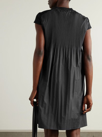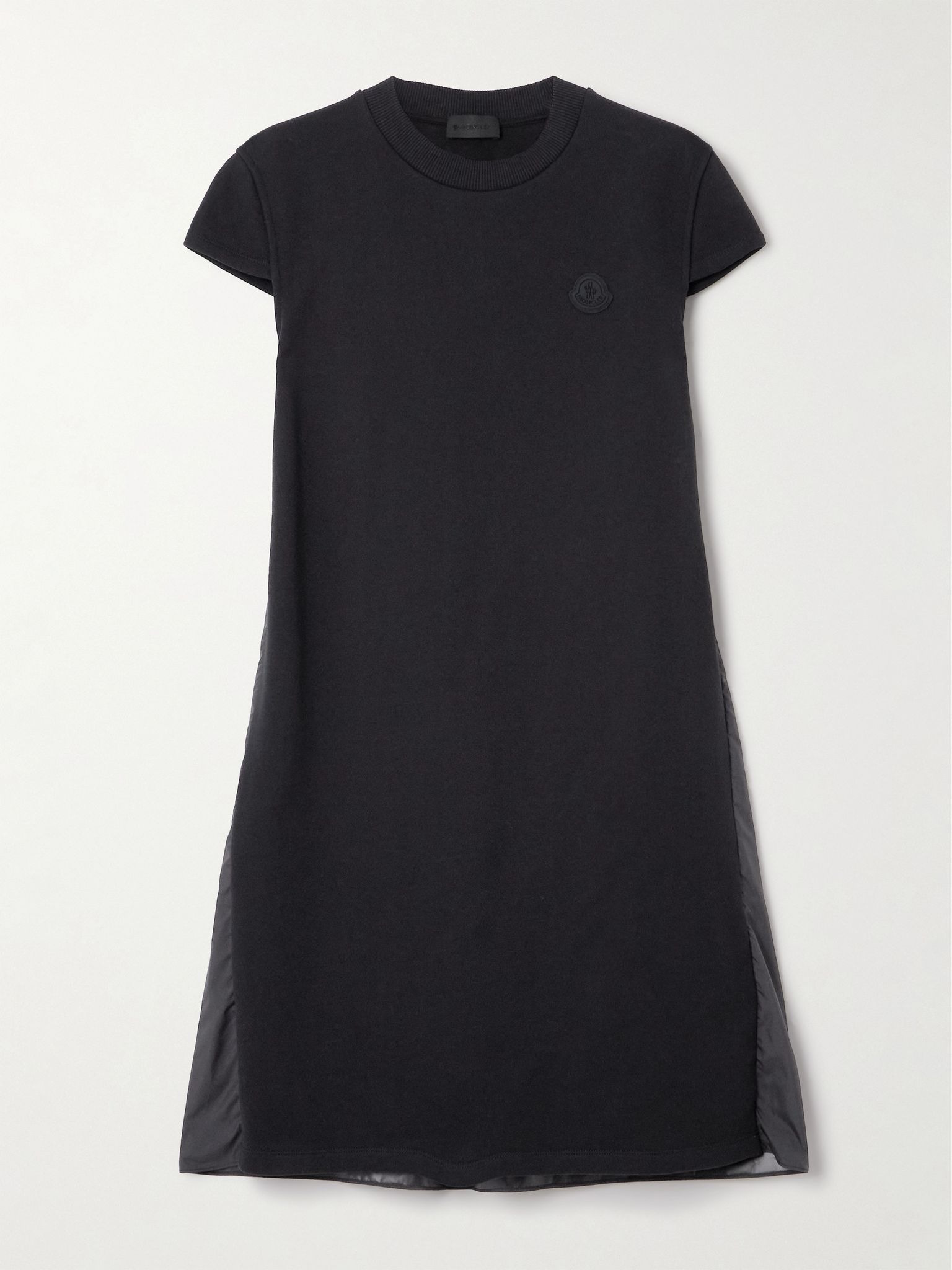 Appliquéd cotton-jersey and pleated shell mini dress Black