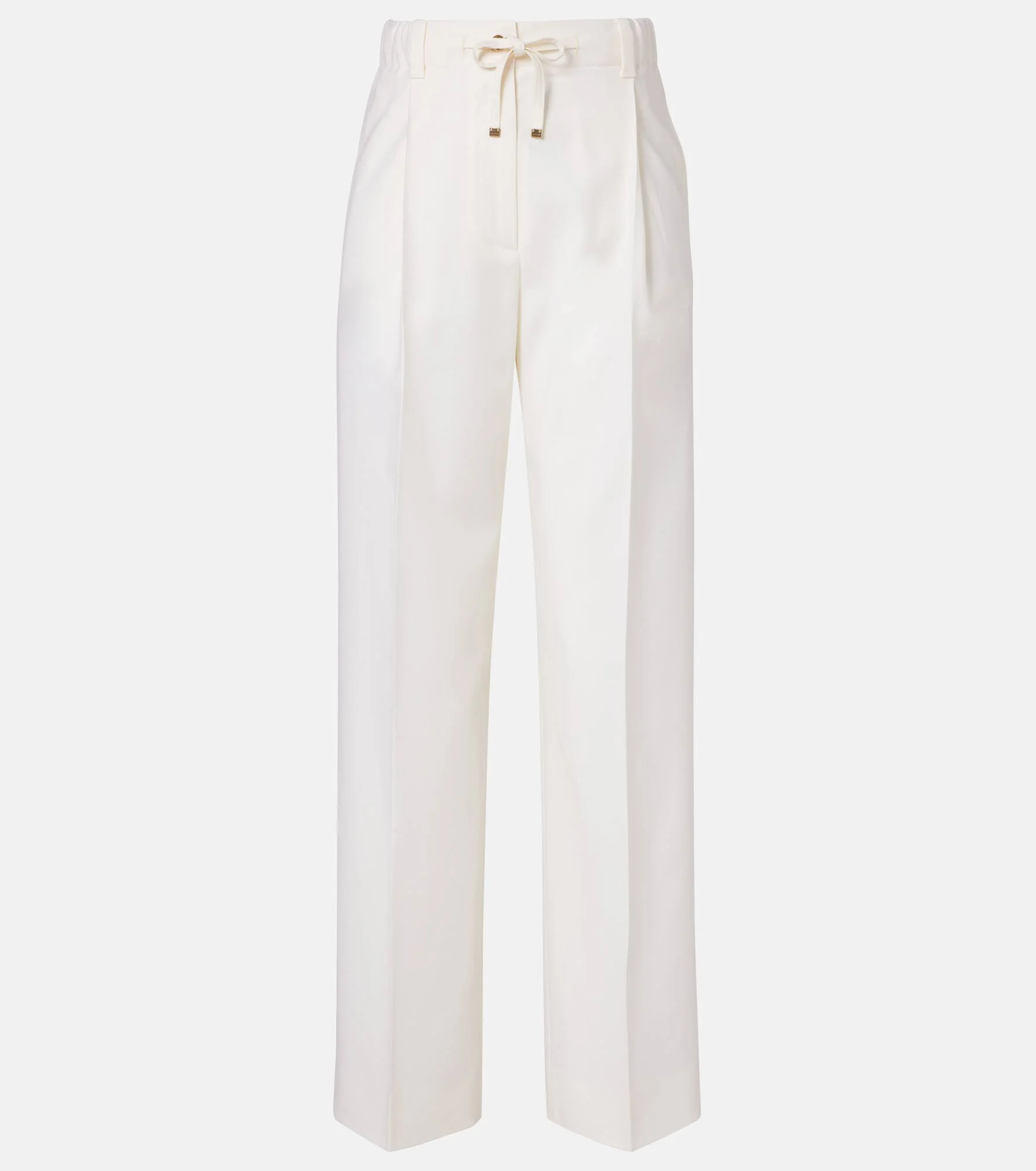 Moncler’s pleated wool straight pants feature a single-pleat silhouette with an elasticated drawstring waist and belt loops. Designed with a zipped front, side slit pockets, and back pockets, they combine tailored structure with a relaxed, functional appeal. Product Details - Material: 100% virgin wool - Care instructions: dry clean - Made in Romania - Designer color name: 050 - Item color: white - Details: 100% calf leather - Contains non-textile parts of animal origin - Hardware color: gold - Belt loops - Elasticated drawstring waist - Closure: zipped front - Pockets: side slit pockets, back pockets - Single pleat - Item number: P01101151 Size & Fit - Fits large to size - we recommend trying one size smaller - Elasticated waist - Adjustable at the waist - Non-stretchy fabric - Straight leg - The model seen in the picture is 178cm-5'10" and wearing a size IT 38