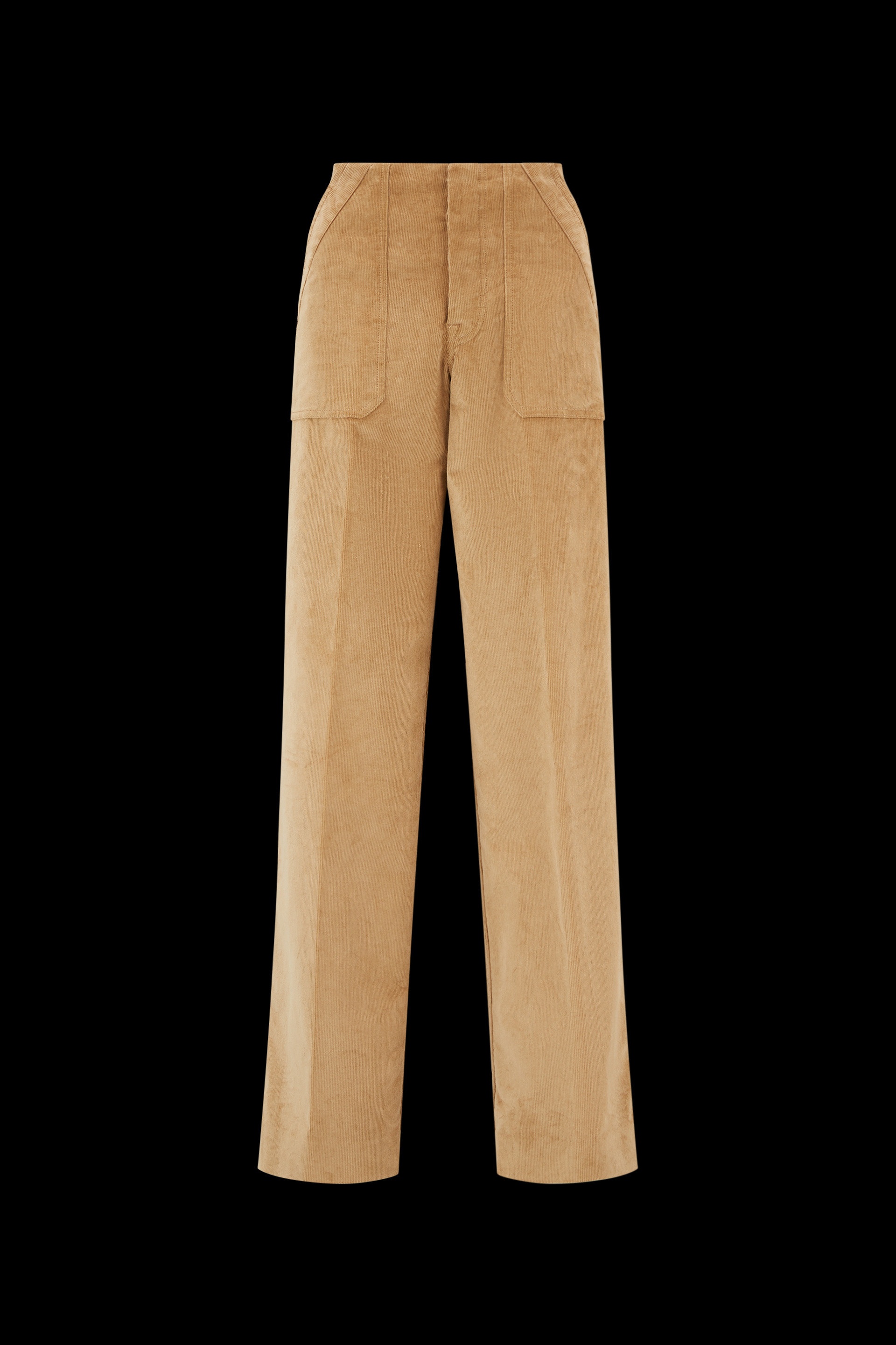 An everyday design for women, these poplin pants are easily dressed up or down. Inspired by the bohemians of the ‘70s, these pants come in a loose fit. The style is crafted from stretch cotton poplin in a neutral shade. - Crafted from stretch cotton poplin - Button closure - Front patch pockets, back patch pocket and hammer loop - Embossed grosgrain logo SIZE AND FIT - The model is wearing a size 40 and is 178 cm tall - The model measures: chest 82 cm, waist 60 cm, hips 89 cm COMPOSITION AND CARE BASE FABRIC: 98% Cotton, 2% Elastane / Spandex Wash max 30°C - Mild process; Do not bleach; Do not tumble dry; Ironing maximum temperature 110°C - without steam; Do not dry clean; Professional wet cleaning - mild process; Flat dry in the shade; Wash separately; It is advisable to wash and iron the garment on reverse. Product code H20932A00019596ED224 Made in Italy