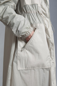 A parka coat with for sun, rain, or wind, the Potet for women is crafted from micro ripstop nylon. A featherweight parka for the transitional months, the Potet is crafted from micro ripstop nylon. A love of lightness, one of the collection's main themes, is seen through the parka coat's soft volume and pale color palette. Layer over separates in muted tones for a full look. - Crafted from micro ripstop nylon - Hood with micro ripstop nylon lining - Snap button closure - Zipped pockets - Adjustable hem SIZE AND FIT - The model is wearing a size 0 and is 179 cm tall - The model measures: bust 78 cm, waist 61 cm, hips 89 cm - Loose fit - Adjustable, elasticized waistline COMPOSITION AND CARE HOOD LINING: 100% Polyamide / Nylon; BASE FABRIC: 100% Polyamide / Nylon Wash max 30°C - Mild process; Do not bleach; Do not tumble dry; Ironing maximum temperature 110°C - without steam; Do not dry clean; Professional wet cleaning - mild process; Flat dry in the shade; Wash separately; It is advisable to wash and iron the garment on reverse.; PROTECT TRIMS WHILE WASHING Product code I10931C00014595JJ91Y Made in Romania