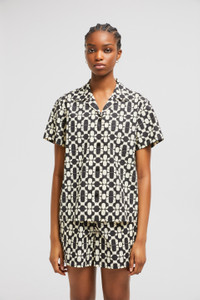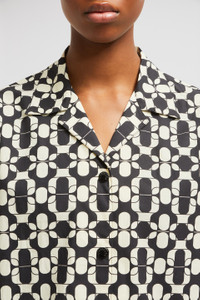 Inspired by striking designs from the '70s, this short sleeve shirt for women is embellished with an optical print. A nod to '70s maximalism, this shirt is characterized by a geometric pattern. The top is crafted from crisp cotton poplin, ideal for mild weather. A bold total look, the style can be combined with pieces in the matching pattern. DETAILS - Crafted from cotton poplin - Organic cotton poplin lining - Collar - Snap button closure - Logo patch SIZE AND FIT - The model is wearing a size 0 and is 178 cm tall COMPOSITION EXTERIOR: 100% Cotton; YOKE LINING: 100% Cotton Product code K10932F00018598H6F09 Made in Italy