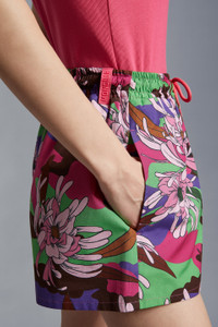 Young and contemporary, these cotton poplin shorts from the women's collection boast a colorful print. Inspired by the nature, these shorts boast a colorful, tropical-infused print. The cotton poplin style is best when paired with vibrant tops. - Crafted from cotton poplin - Waistband with elastic drawstring fastening - Hidden pockets - Logo SIZE AND FIT - The model is wearing a size 40 and is 178 cm tall - The model measures: bust 87 cm, waist 59 cm, hips 89 cm COMPOSITION AND CARE BASE FABRIC: 100% Cotton Wash max 30°C - Mild process; Do not bleach; Do not tumble dry; Ironing maximum temperature 110°C - without steam; Dry cleaning in tetrachloroethene or with hydrocarbons - mild process; Professional wet cleaning - mild process; Flat dry in the shade; Wash separately; It is advisable to wash and iron the garment on reverse.; PROTECT TRIMS WHILE WASHING Product code I10932B00014596S1F57 Made in Romania