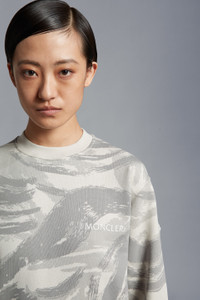 This fleece sweatshirt for women is part of the 4 Moncler HYKE collection. Boasting an abstract outdoor print in neutral hues, this sweatshirt is emblematic of the Moncler Genius collaboration. The oversized style is crafted from cotton fleece. - Crafted from cotton fleece - Crew neck - Underarms with zipper closure - Logo print on chest SIZE AND FIT - The model is wearing a size XS and is 177 cm tall - The model measures: bust 77 cm, waist 60 cm, hips 85 cm - Oversized fit COMPOSITION AND CARE BASE FABRIC: 100% Cotton; Ribs: 100% Cotton Wash max 30°C - Mild process; Do not bleach; Do not tumble dry; Ironing maximum temperature 110°C - without steam; Do not dry clean; Professional wet cleaning - mild process; Flat dry in the shade; Wash separately; Wash inside out; Iron inside out Product code H209K8G00002M2547F92 Made in Turkey