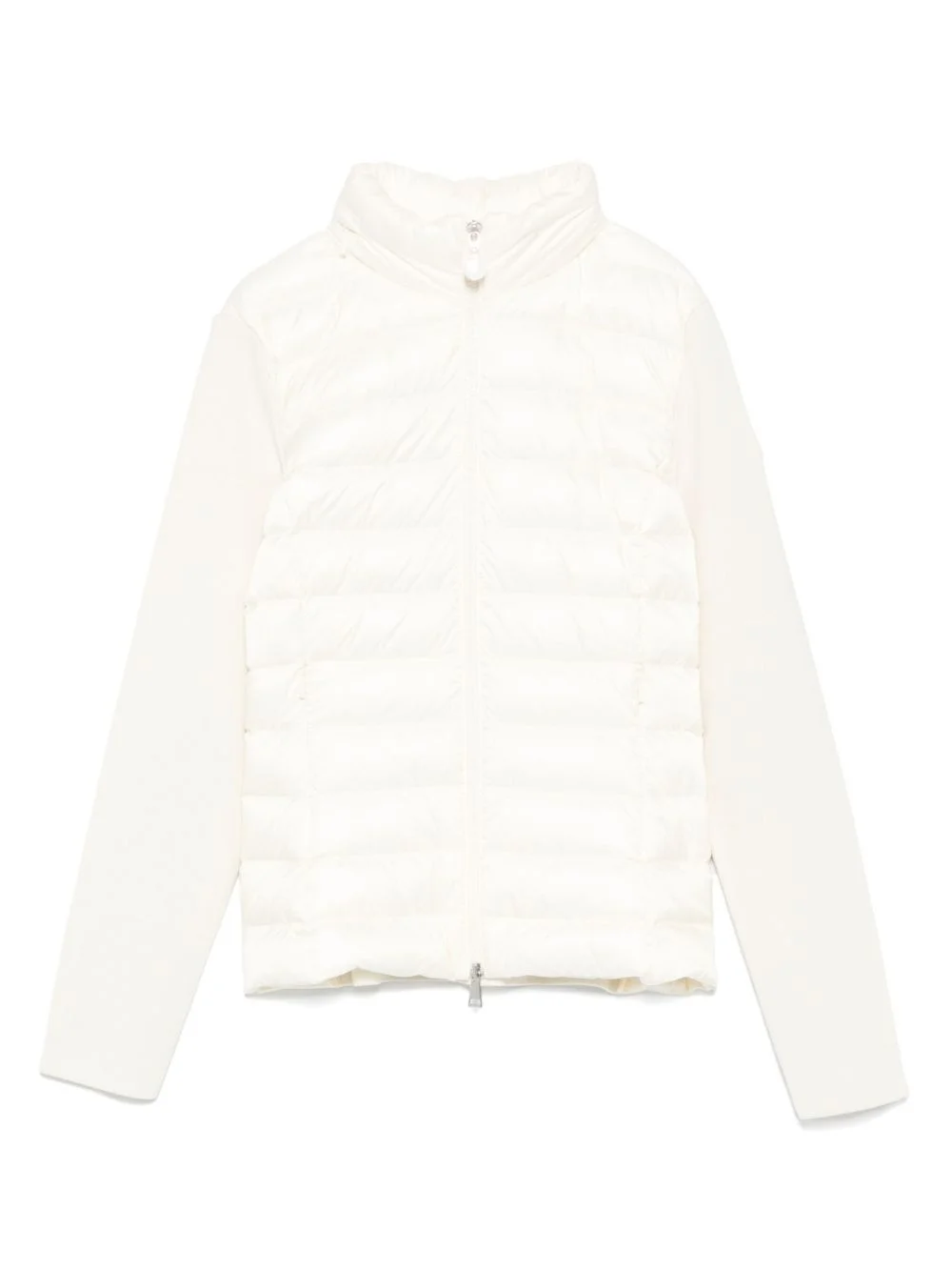 logo-patch padded jacket Highlights - Ecru - Front two-way zip fastening - Two side zip-fastening pockets - Concealed hood - Knitted panels Imported Composition Outer: Polyamide 100%, Wool 95%, Polyester 5% Lining: Polyamide 100%, Goose Down 90%, Feather Down 10% SIZE & FIT Model measurements Height 5 ft 9 in(1.75 m) Bust/Chest 31.88 in(81 cm) Hips 34.64 in(88 cm) Waist 24.01 in(61 cm) FittingInformation Designed for a slim fit that sits just away from the body offering a close yet comfortable fit Made from a midweight fabric Washing instructions Dry Clean Only