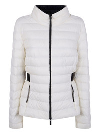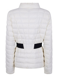 quilted belted jacket Highlights - White - Quilted design - Belted waist - Mock neck - Zip fastening - Logo patch Made in Italy Composition Fabric 100% SIZE & FIT FittingInformation Designed for a slim fit that sits just away from the body offering a close yet comfortable fit Made from a padded non-stretch fabric, giving it no natural elasticity