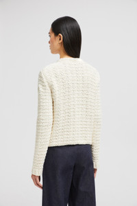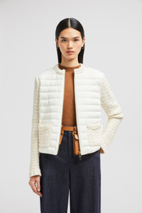 A timeless design that transcends seasons, this cotton blend cardigan for women is enhanced with a padded front. Easily worn throughout the year, this cotton blend cardigan boasts a down-filled front for extra warmth. Recalling the rich texture of tweed, the heavy knit features an elegant three-dimensional finish. DETAILS - Crafted from cotton and viscose blend - Polyester lining - Down-filled polyester front - Gauge 3 - Zipper closure - Cable knit trim - Leather logo patch SIZE AND FIT - The model is wearing a size XS and is 175 cm tall - The model measures: bust 76 cm, waist 59 cm, hips 86 cm - Regular fit COMPOSITION OUTER FRONT: 100% Polyester; BASE FABRIC: 76% Cotton, 15% Polyamide / Nylon, 9% Viscose / Rayon; FRONT LINING: 100% Polyester; PADDING: 90% Down, 10% Feather;LEATHER TAG: COW LEATHER Product code K10939B00024M5810034 Made in Tunisia