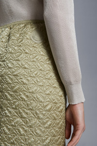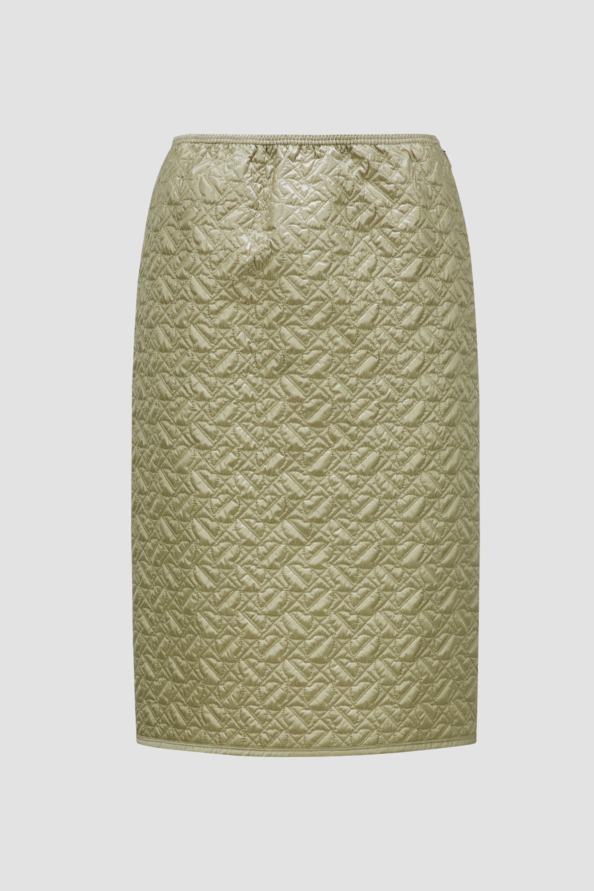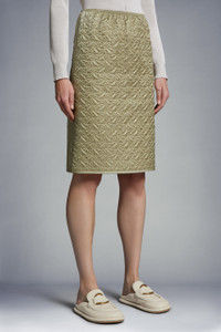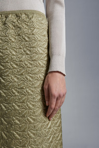 Timeless elegance is sublimated in this padded pencil skirt for women - enriched with an innovative quilting pattern. Timeless taste meets the utmost luxury in this pencil skirt. Crafted from drill léger, the padded skirt is refreshed with an innovative quilting pattern that depicts abstractions of the brand logo. Pairs perfectly with a jacket, for a look inspired by ‘50s elegance. - Crafted from drill léger - Padded - Elastic waistband with drawstring fastening - Side zipper closure - Double topstitched smooth fabric hem - Double-layered jacquard logo patch SIZE AND FIT - The model is wearing a size 40 and is 180 cm tall - The model measures: bust 77 cm, waist 61 cm, hips 88 cm COMPOSITION AND CARE EXTERIOR: 100% Polyamide / Nylon; LINING: 100% Polyamide / Nylon; PADDING: 100% Polyester Wash max 30°C - Very mild process; Do not bleach; Do not tumble dry; Ironing maximum temperature 110°C - without steam; Dry cleaning in tetrachloroethene or with hydrocarbons - mild process; Professional wet cleaning - very mild process; Flat dry in the shade; Wash separately; It is advisable to wash and iron the garment on reverse. Product code J10932D00006788L6219 Made in Hungary