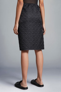 Timeless elegance is sublimated in this padded pencil skirt for women - enriched with an innovative quilting pattern. Timeless taste meets the utmost luxury in this pencil skirt. Crafted from drill léger, the padded skirt is refreshed with an innovative quilting pattern that depicts abstractions of the brand logo. Pairs perfectly with a jacket, for a look inspired by ‘50s elegance. - Crafted from drill léger - Padded - Elastic waistband with drawstring fastening - Side zipper closure - Double topstitched smooth fabric hem - Double-layered jacquard logo patch SIZE AND FIT - The model is wearing a size 40 and is 177 cm tall - The model measures: bust 73 cm, waist 60 cm, hips 88 cm COMPOSITION AND CARE EXTERIOR: 100% Polyamide / Nylon; LINING: 100% Polyamide / Nylon; PADDING: 100% Polyester Wash max 30°C - Very mild process; Do not bleach; Do not tumble dry; Ironing maximum temperature 110°C - without steam; Dry cleaning in tetrachloroethene or with hydrocarbons - mild process; Professional wet cleaning - very mild process; Flat dry in the shade; Wash separately; It is advisable to wash and iron the garment on reverse. Product code J10932D00006788L6999 Made in Hungary