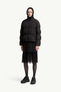 Embodying elevated minimalism, the Ravignan short down jacket for women is defined by elegant gathered accents. Designed for modern women who place equal value on function and aesthetics, the Ravignan down jacket is crafted from soft taffeta. An innovative quilting technique creates gathered textures, adding dimension to the design. DETAILS - Crafted from taffeta - Taffeta lining - Down-filled - Stand collar - Zipper closure - Zipped pockets - Elastic cuffs - Adjustable hem - Silicone logo patch SIZE AND FIT - The model is wearing a size 0 and is 179 cm tall - Oversized fit - Length (collar to hem): 58 cm COMPOSITION EXTERIOR: 100% Polyester; LINING: 100% Polyester; PADDING: 90% Down, 10% Feather Product code K20931A00084595HQ999 Made in Romania