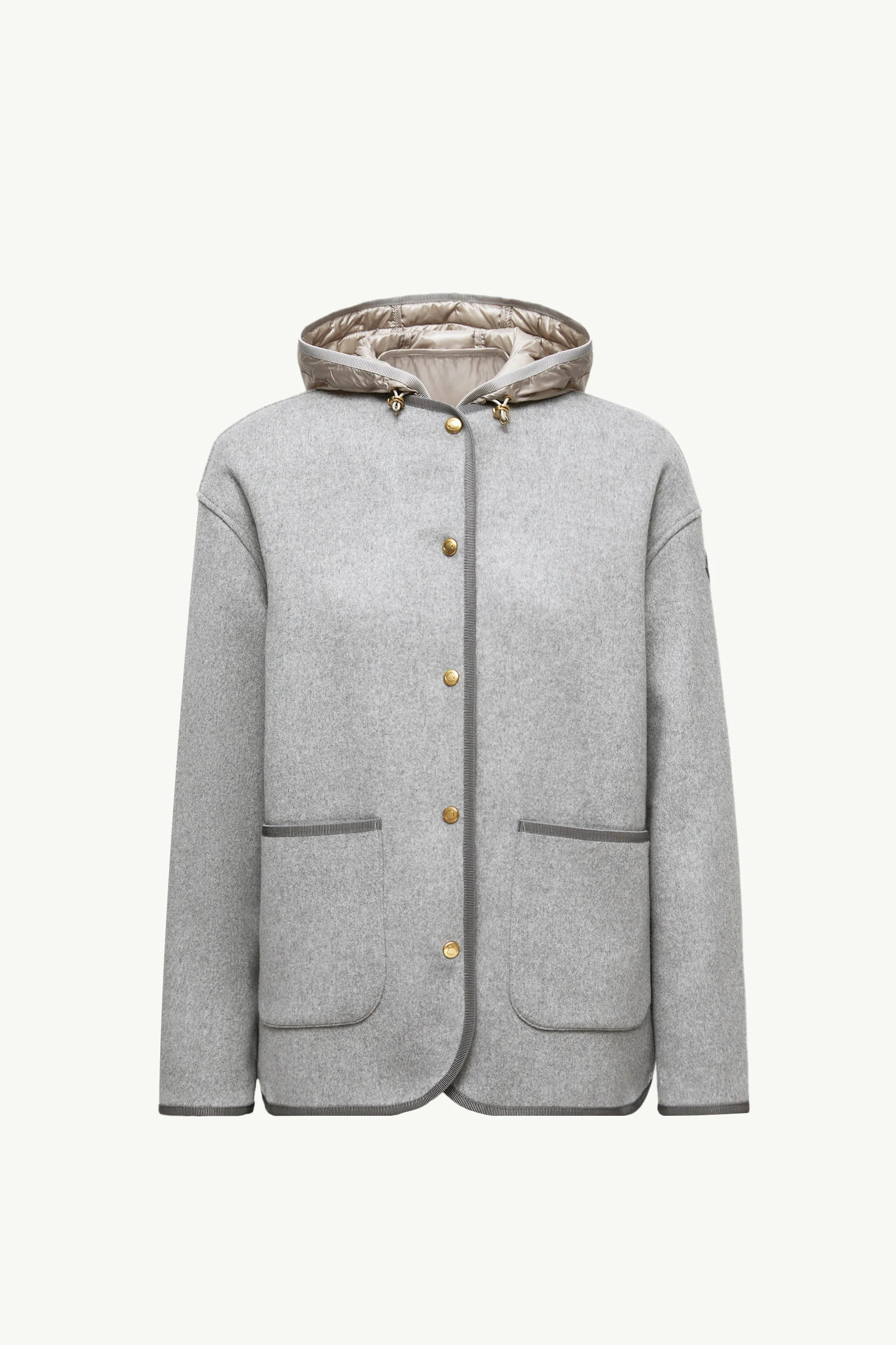 An elevated 3-in-1 design, the wool and cashmere Reposse down jacket for women boasts a detachable inner vest. Luxury meets function in the Reposse down jacket. Crafted from wool and cashmere, the warmer is enhanced with a fully detachable puffer vest in water-repellent nylon. Perfect for any season, both items can be styled together or separately to match the temperature. DETAILS - Crafted from a wool and cashmere blend - Grosgrain trim - Detachable down-filled inner longue saison vest - Hood with recycled longue saison lining - Zipper and snap button closure - Zipped pockets - Patch pockets - Leather logo patch SIZE AND FIT - Loose fit - Length (collar to hem): 76 cm COMPOSITION PART A: BASE FABRIC: 90% Virgin wool, 10% Cashmere;LEATHER TAG: CALF; PART B: EXTERIOR: 100% Polyamide / Nylon; LINING: 100% Polyamide / Nylon; HOOD LINING: 100% Polyamide / Nylon; PADDING: 90% Down, 10% Feather;LEATHER TAG: CALF Product code K20931A000525980N987 Made in Romania