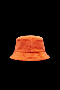 A reversible accessory, this women's terrycloth bucket hat is featured in vitamin colors. A sun-soaked design from a swimwear-inspired collection - Crafted from terrycloth - Taffeta lining - Reversible COMPOSITION AND CARE LINING: 100% Polyamide / Nylon; BASE FABRIC: 86% Cotton, 14% Polyamide / Nylon Hand wash; Do not bleach; Do not tumble dry; Ironing maximum temperature 110°C - without steam; Dry cleaning in tetrachloroethene or with hydrocarbons - mild process; Do not professionally wet clean; Flat dry in the shade; Wash separately; Do not twist or wring; do not soak; It is advisable to wash and iron the garment on reverse. Product code I10933B00030596LS30A Made in Bulgaria