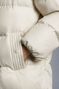 With its feminine lines, functional details and quality materials, the Erysimum parka for women embodies the renowned Moncler elegance. This style is crafted in technical taffeta with a precious texture and down filled boudin quilting for warmth. Thanks to a detachable hood and a drawcord hem, its fit can be updated depending on your mood and the weather. - Parka for women - Crafted in technical taffeta - Down filled and boudin quilted - Technical taffeta lining - Front two-way zipper covered by storm flap with snap closures - Shiny nylon laqué detachable hood with three contrast color drawcords. - Cased elastic cuffs - Drawcord hem - Moncler lettering graphic on back - Felt Moncler logo on sleeve - Long length SIZE AND FIT - The model is wearing a size 1 and is 176 cm tall - Designed for an oversized fit. Cut for a loose fit across the shoulders, with extra room on the body. COMPOSITION AND CARE EXTERIOR: 100% Polyester; LINING: 100% Polyester; HOOD LINING: 100% Polyester; HOOD: 100% Polyamide / Nylon; PADDING: 90% Down, 10% Feather; 1 MATERIAL: 100% Polyester Wash max 30°C - Mild process; Do not bleach; Do not tumble dry; Ironing maximum temperature 110°C - without steam; Dry cleaning in tetrachloroethene or with hydrocarbons - mild process; Professional wet cleaning - mild process; Flat dry in the shade; Wash separately; It is advisable to wash and iron the garment on reverse.; PROTECT TRIMS WHILE WASHING Product code G20931C00035595JG035 Made in Romania