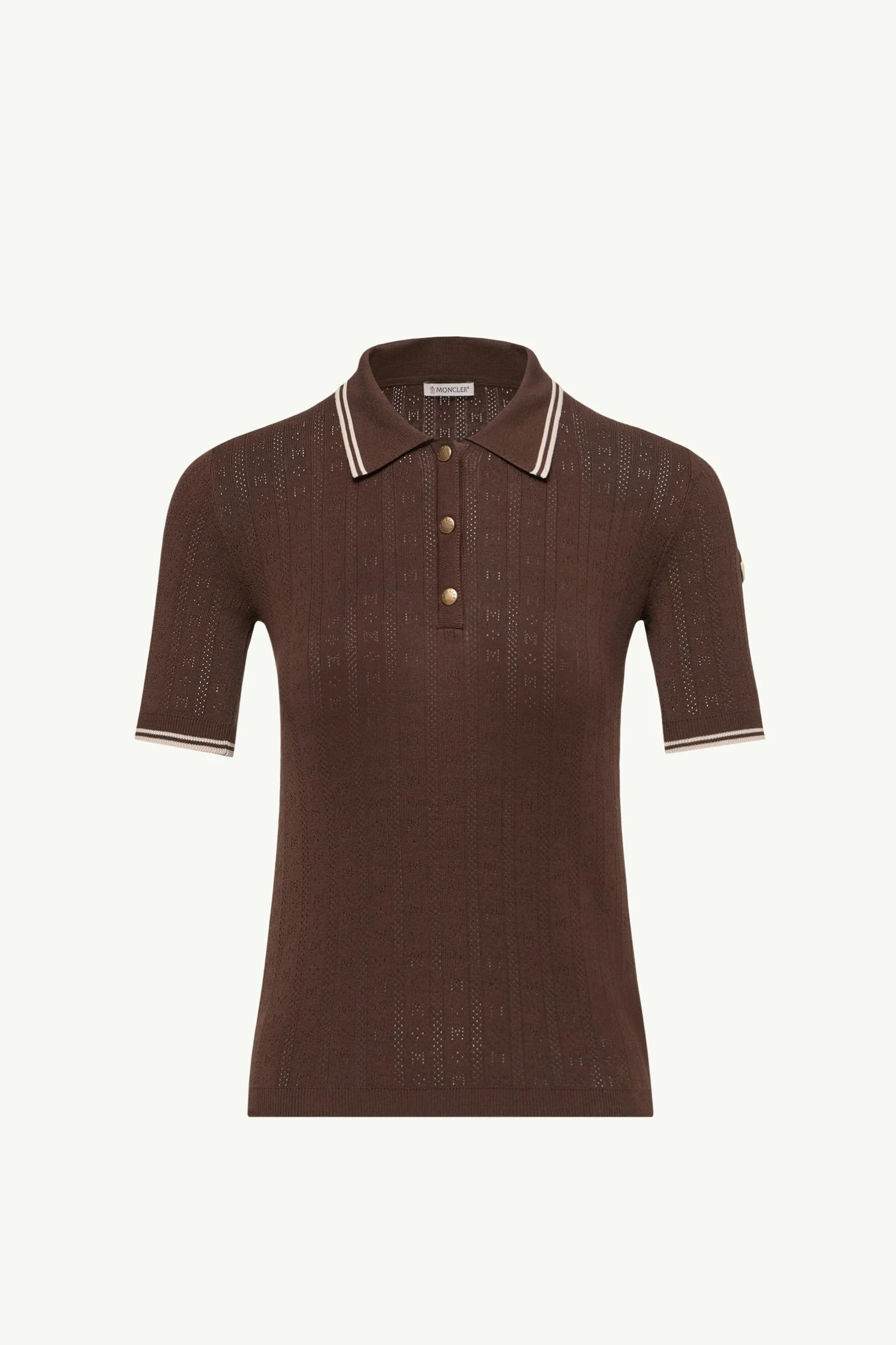 Shaped by Moncler's heritage, this polo shirt for women features an intricate logo pattern. An evolution of brand codes, the logo is transformed into a delicate open work motif atop this polo shirt. The lightweight knit is crafted from cotton and presented in a short sleeve silhouette. DETAILS - Crafted from cotton - Gauge 18 - Collar - Short sleeves - Button closure - Knit logo pattern COMPOSITION BASE FABRIC: 100% Cotton Product code L10939A00005M9371242 Made in Romania