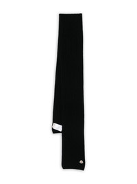 ribbed logo-patch scarf Highlights - Black - Ribbed texture - Virgin wool-cashmere blend - Logo patch - Rectangular shape Made in Italy Composition Virgin Wool 90%, Cashmere 10% SIZE & FIT Measurement LENGTH 82.67 in(210 cm) WIDTH 7.48 in(19 cm)