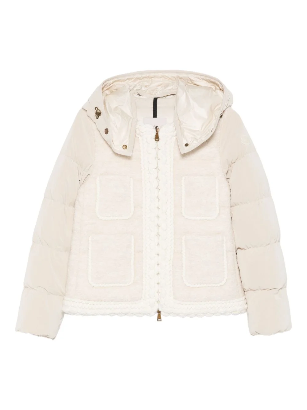 Ripaille puffer jacket Highlights - Cream white - Padded design - Hooded - Front pockets - Button fastening - Braided trim Imported Composition Outer: Polyamide 100%, Acrylic 100%, Polyester 100%, Viscose 100%, Wool 100% Lining: Polyamide 100%, Goose Down 90%, Feather 10% SIZE & FIT Model measurements Height 5 ft 9 in(1.76 m) Bust/Chest 31.88 in(81 cm) Hips 35.43 in(90 cm) Waist 24.8 in(63 cm) Washing instructions Hand Wash