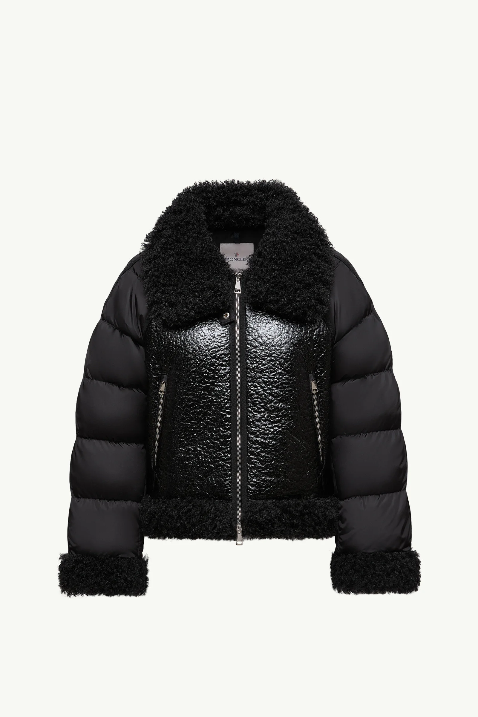 From shiny patent-effect fabric to teddy, bold textures infuse the Rubrouk short down jacket for women with a contemporary aesthetic. Adding a tactile twist, the Rubrouk short down jacket plays with different finishes. The puffer is crafted from nylon, while a plush teddy collar and patent-effect front add textural depth. The warmer drapes effortlessly across the body, cocooning the silhouette with a relaxed fit. DETAILS - Crafted from nylon - Patent-effect polyester front - Teddy trim and collar - Down-filled - Zipper and snap button closure - Zipped pockets - Logo patch SIZE AND FIT - The model is wearing a size 0 and is 180 cm tall - Loose fit - Length (collar to hem): 55 cm COMPOSITION OUTER BACK: 100% Polyamide / Nylon; OUTER FRONT: 100% Polyester; LINING: 100% Polyamide / Nylon; FRONT LINING: 100% Polyester; PADDING: 90% Down, 10% Feather; DETAILS PADDING: 100% Polyester; 1 MATERIAL: 100% Polyamide / Nylon Product code K20931A00208598Y5999 Made in Moldova
