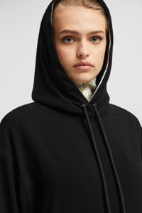 An elevated casual design from the women's collection, this hooded top is crafted from satin. Inspired by Los Angeles in the '90s, this hooded top is crafted from satin. The casual style is embellished with a logo ribbon along the hood and a logo patch on the chest. DETAILS - Crafted from envers satin - Adjustable hood - Kangaroo pocket - Elastic hem - Logo Patch SIZE AND FIT - The model is wearing a size 40 and is 178 cm tall - The model measures: bust 82 cm, waist 60 cm, hips 89 cm COMPOSITION EXTERIOR: 98% Polyester, 2% Elastane / Spandex; HOOD LINING: 98% Polyester, 2% Elastane / Spandex Product code J20932G00010596WF999 Made in Romania