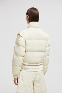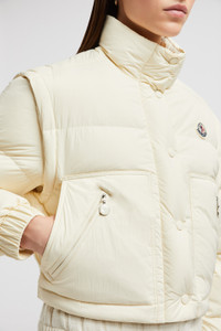 A 2-in-1 design from the women's collection, the Selle's detachable sleeves allow for styling as a short down jacket or puffer vest. The definition of versatility, the Selle short puffer moves seamlessly from jacket to vest thanks to detachable sleeves. Adding to its contemporary feel, the nylon puffer comes in a voluminous silhouette cut to a cropped length. An adjustable hem completes the warmer, ensuring the perfect fit. DETAILS - Crafted from washed nylon - Recycled longue saison lining - Down-filled - Detachable sleeves - Zipper closure - Zipped pockets - Adjustable cuffs - Hem with drawstring fastening SIZE AND FIT - The model is wearing a size 0 and is 179 cm tall - The model measures: bust 77 cm, waist 59 cm, hips 87 cm - Loose fit COMPOSITION EXTERIOR: 100% Polyamide / Nylon; LINING: 100% Polyamide / Nylon; PADDING: 90% Down, 10% Feather; DETAILS PADDING: 100% Polyester Product code K10931A000255988M051 Made in Romania