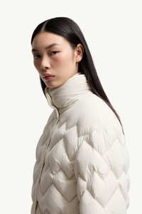 Seeing classic quilting through a whimsical lens, the women's Senevee short down jacket features a heart-shaped pattern. Originally designed as a functional detail, quilting is reimagined in the Senevee short down jacket. The puffer is adorned with a geometric motif, ensuring warmth and protection while adding a playful feel. Effortlessly adating to the colder season, the warmer is crafted from technical nylon with a plush feel. DETAILS - Crafted from micro soft nylon - Polyester lining - Down-filled - Snap button closure - Zipped pockets - Logo patch SIZE AND FIT - The model is wearing a size 0 and is 177 cm tall - Loose fit - Length (collar to hem): 54 cm COMPOSITION EXTERIOR: 100% Polyamide / Nylon; LINING: 100% Polyester; PADDING: 90% Down, 10% Feather Product code K20931A0023359815050 Made in Romania