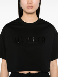 sequin-logo cropped T-shirt Highlights - Black - Cotton - Jersey texture - Crew neck - Short sleeves - Applique logo at the sleeve - Sequin-embellished logo at the chest - Cropped - Straight hem Imported Composition Cotton 100% SIZE & FIT Model measurements Height 5 ft 10 in(1.77 m) Bust/Chest 31.49 in(80 cm) Hips 35.82 in(91 cm) Waist 25.98 in(66 cm) FittingInformation Designed for a boxy fit, intended for a loose fit throughout Made from a midweight non-stretch fabric, this piece offers minimal elasticity when worn This piece fits true to size – take your usual size Washing instructions Machine Wash