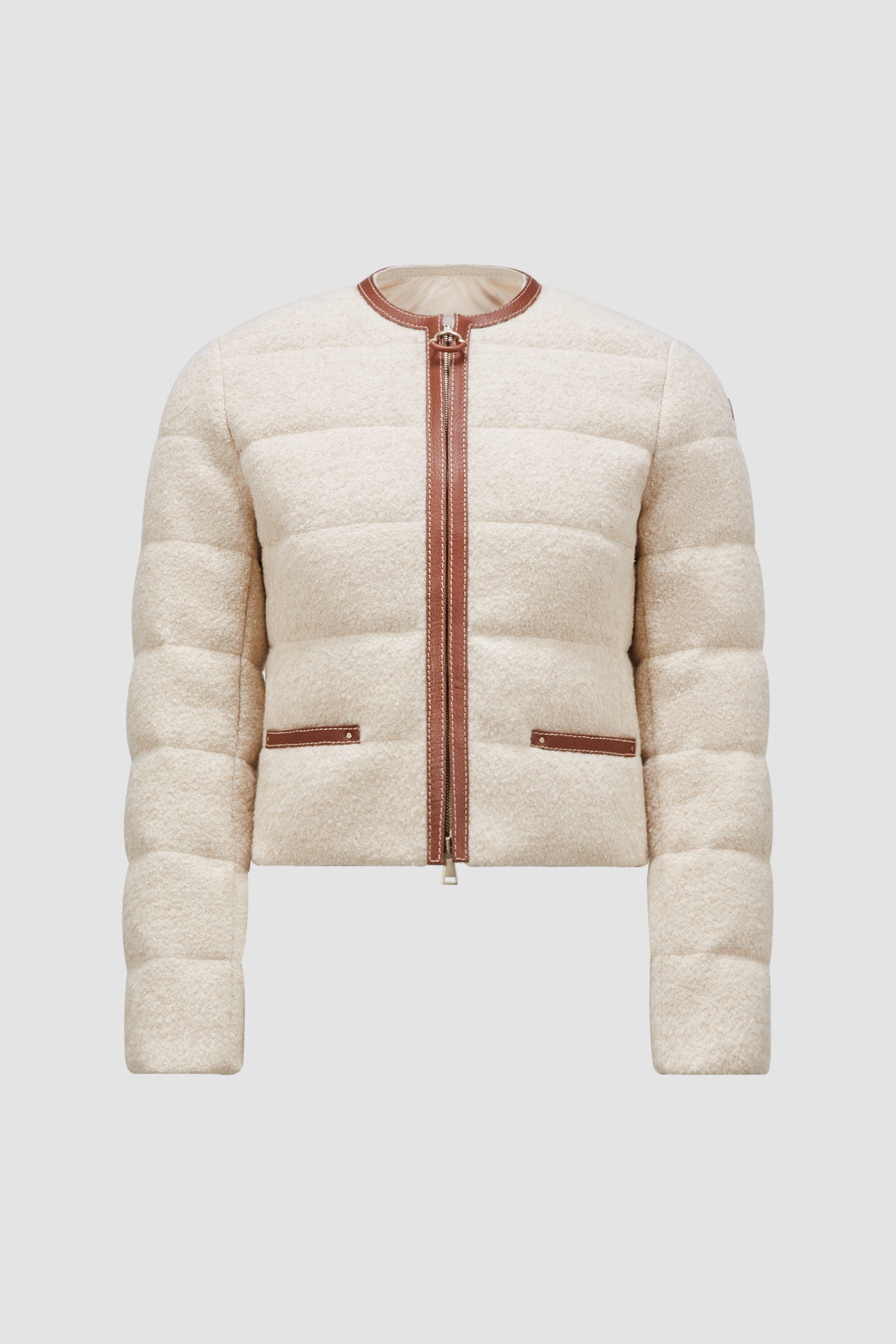 The Serinde short down jacket for women draws inspiration from the equestrian world, known for its leather and sophisticated details. A wardrobe staple of the modern woman, the Serinde down jacket comes in a classic collarless shape. A fusion of functional and ultra-luxury, the short puffer has a soft boucle front and a lightweight nylon back. The timeless silhouette is finished with a supple leather trim. DETAILS - Crafted from soft boucle - Longue saison lining - Leather trim - Down-filled - Zipper closure - Welt pockets - Leather logo patch SIZE AND FIT - The model is wearing a size 0 and is 178 cm tall - The model measures: bust 78 cm, waist 61 cm, hips 92 cm - Slim fit COMPOSITION EXTERIOR: 62% Wool, 28% Viscose / Rayon, 10% Polyamide / Nylon; OUTER BACK: 100% Polyamide / Nylon; LINING: 100% Polyamide / Nylon; PADDING: 90% Down, 10% Feather;LEATHER TAG: COW LEATHER; LEATHER OUTER APPLICATION: CALF Product code J20931A00061597TE268 Made in Hungary