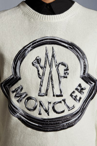 A versatile design, refined yarns and a precious reinterpretation of Moncler’s logo. This sweater will be a new must-have of everyday looks. A style for women crafted in an extremely soft and warm wool and cashmere-blend. Reinterpreted in silver, the heritage logo is the defining, feminine touch of this look. - Sweater for women - Crafted with wool and cashmere-blend yarn - Seven-gauge stitch plain knit - Crewneck - Silver embroidered Moncler logo SIZE AND FIT - The model is wearing a size S and is 180 cm tall - Regular fit COMPOSITION AND CARE OUTER APPLICATION: 100% Polyamide / Nylon; Embroidery: 75% Polyester, 25% Viscose / Rayon; BASE FABRIC: 70% Virgin wool, 30% Cashmere Do not wash; Do not bleach; Do not tumble dry; Ironing maximum temperature 110°C - without steam; Dry cleaning in tetrachloroethene or with hydrocarbons - mild process; Do not professionally wet clean; Flat dry in the shade; Wash separately; It is advisable to wash and iron with the garment on reverse. Product code G20939C00019M1127002 Made in Italy