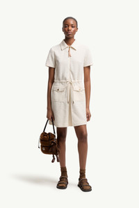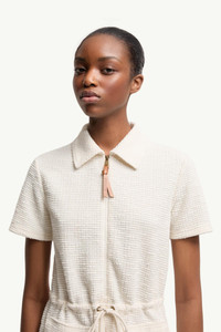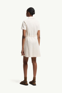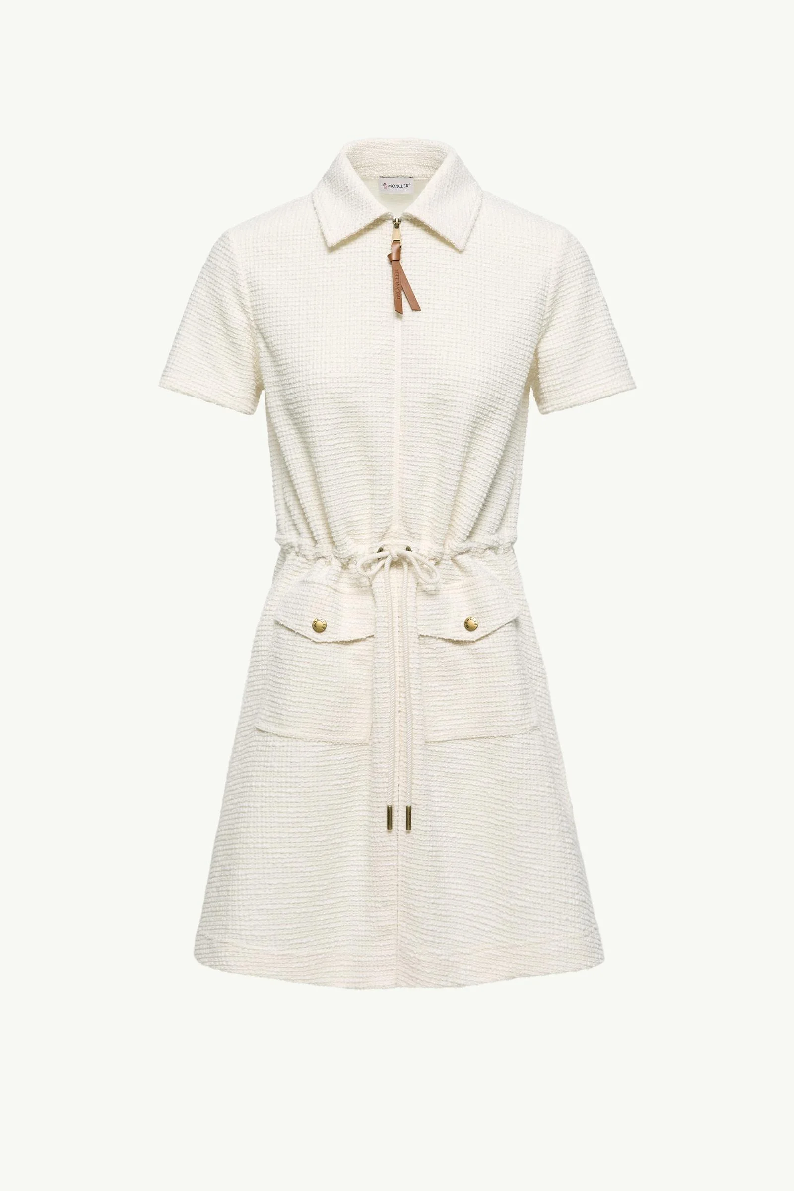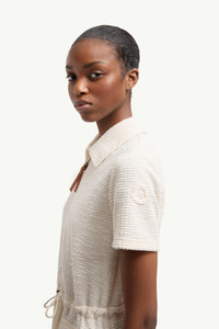 Sophisticated textures define the collection, elevating seasonal staples. This mini dress is presented in boucle with a macrame logo. Juxtaposing a sporty aesthetic with unexpected textures, this design draws from the classic polo shirt for inspiration. The mini dress is crafted from boucle, enhancing the piece with a tactile effect. DETAILS - Crafted from boucle - Collar - Short sleeves - Zipper closure - Pockets with snap button closure - Macrame logo patch SIZE AND FIT - label.sizeandfitmodels.woman.1 - Regular fit COMPOSITION BASE FABRIC: 63% Polyester, 32% Cotton, 3% Viscose / Rayon, 2% Elastane / Spandex Product code L10938I0001289BBV034 Made in Italy