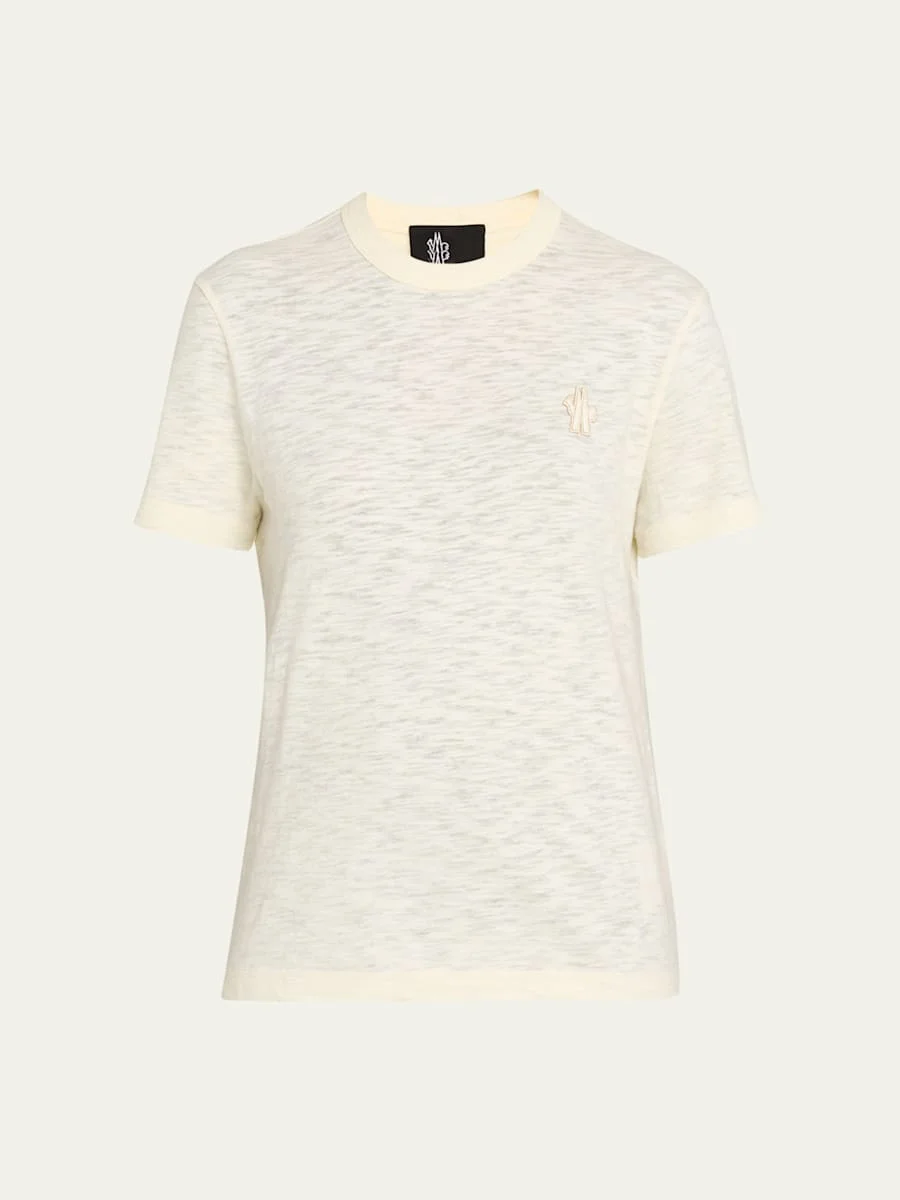 Moncler ultrasoft cotton tee adorned with a tonal embroidered logo Crew neckline Short sleeves Classic fit Hem sits at the hip Pullover style Cotton Machine wash Imported SIZE amp; FIT Model measurements: 5'10" tall Model is wearing a US size 4/Small