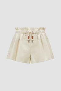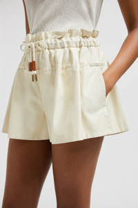 Perfectly relaxed, this pair of shorts from the women's collection is crafted from technical twill. A feminine design for sunny days, these twill shorts feature a flared shape. The bottoms are accentuated by a cotton trim at the waist, subtly highlighting the silhouette. DETAILS - Crafted from cotton and nylon blend technical twill - Cotton waistband with drawstring fastening SIZE AND FIT - The model is wearing a size 40 and is 178 cm tall COMPOSITION EXTERIOR: 59% Cotton, 41% Polyamide / Nylon; LINING: 100% Cotton Product code K10932B000105986I051 Made in Romania