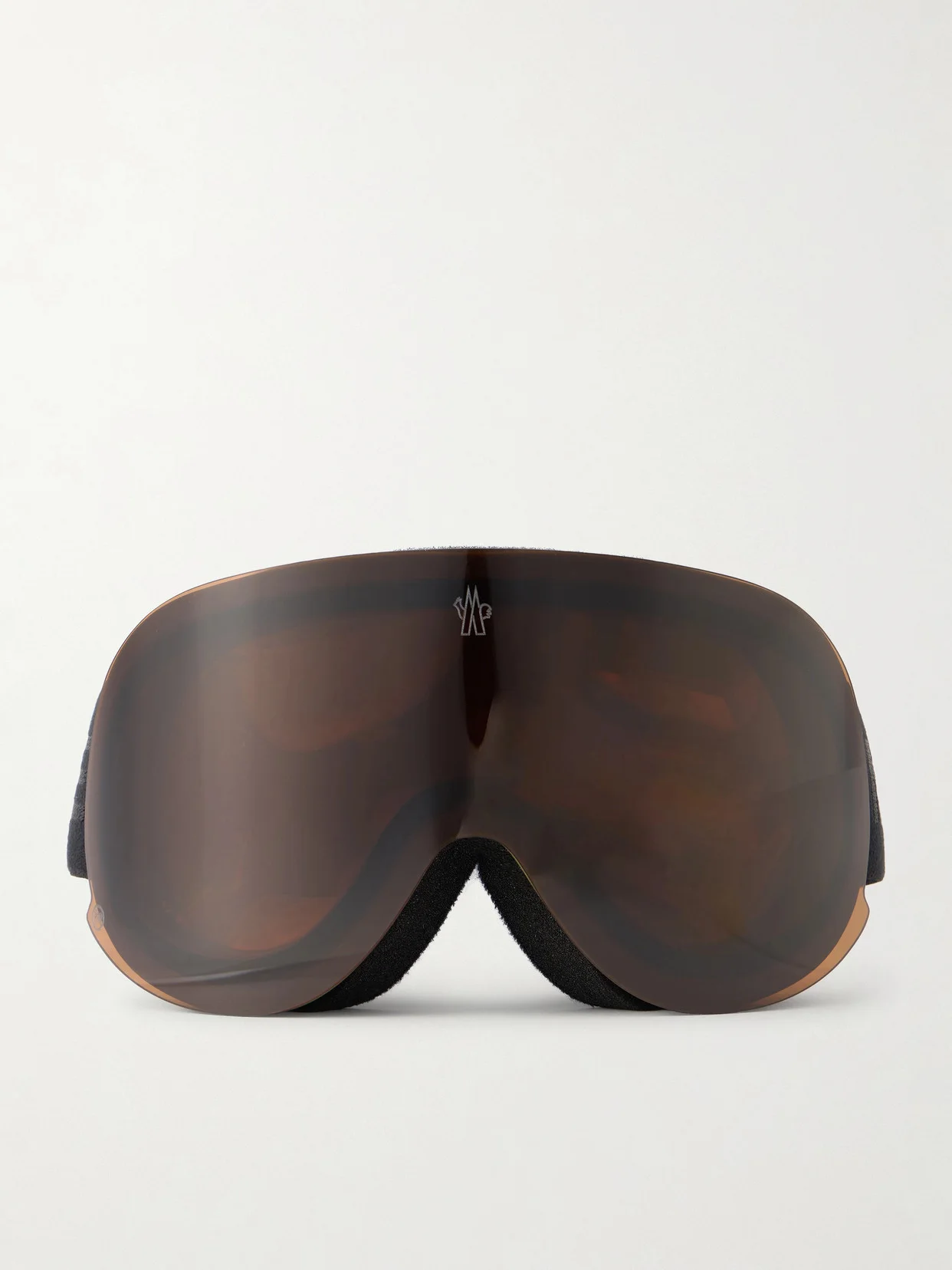 Engineered for performance, MONCLER EYEWEAR's ski goggles combine technical precision with sleek, modern design. The wraparound lens provides optimal visibility and protection, while the cushioned foam lining feels comfortable during long days.