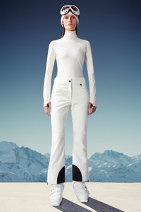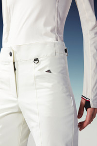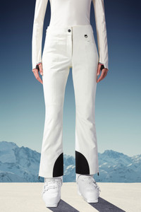 Cutting-edge materials and technical details characterize these ski pants for women. Designed for alpine skiing, these pants are crafted from Gore-Tex Infinium™, guaranteeing complete resistance to water and wind, but perfectly breathable at the same time. This style is finished with heat-seal taped seams, waterproof zipper pockets and a Recco® avalanche safety reflector for maximum security on the slopes. - Designed for alpine skiing - Crafted from 2L plain weave Gore-Tex Infinium™ - Stretch nylon lining - Warm knee and back inner waistband lining - Insulated - Heat-sealed seams - Adjustable waistband - YKK® Aquaguard Highly Water Resistant zipper closure - Pockets with YKK® Aquaguard Highly Water Resistant zipper closure - Ski boot hooks - Invisible Recco® reflector - Silicone logo COMPOSITION AND CARE LINING: 95% Polyamide / Nylon, 5% Elastane / Spandex; PADDING: 100% Polyester; 1 MATERIAL: 100% Polyamide / Nylon; BOTTOM LINING : 100% Polyamide / Nylon; BASE FABRIC: 100% Polyester Wash max 30°C - Mild process; Do not bleach; Do not tumble dry; Ironing maximum temperature 110°C - without steam; Do not dry clean; Professional wet cleaning - mild process; Flat dry in the shade; Wash separately; do not soak; It is advisable to wash and iron the garment on reverse. Product code H20982G00005549F9041 Made in Romania