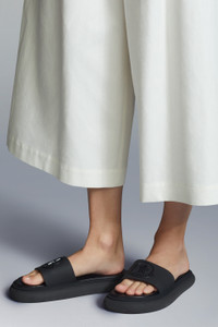 A casual summer classic, these slides for women are made for beach and pool days. Made for the summertime, the Slyder are fit for beach or pool days. The classic slides feature a three-dimensional logo. - TPU upper - Micro rubber sole - Sole height 3.5 cm - Screen-printed logo COMPOSITION AND CARE UPPER: 100% Elastodiene; SOLE: 100% Elastodiene;LINING: LAMB To protect your purchase over time, we recommend the shoes be cleaned using a brush with soft natural bristles or a slightly damp soft cloth. Before cleaning, make sure that the shoes are completely dry. After brushing, apply an appropriate amount of cleaning product to the leather and create small circular motions with a soft dry cloth. For suede shoes, please use a special rubber brush. We also recommend the use of a suitable water-repellent product before wearing the shoes in wet conditions. Dry away from direct heat. Finish the cleaning using a dry clean cloth. Store in the felt bag provided at the time of purchase. Product code H109B4C00080M1800999 Made in Italy
